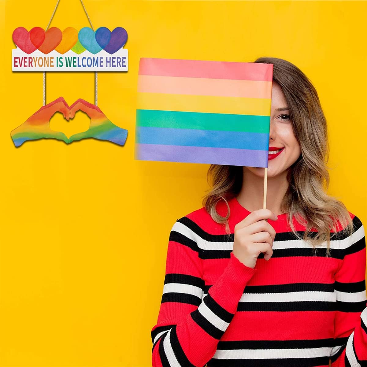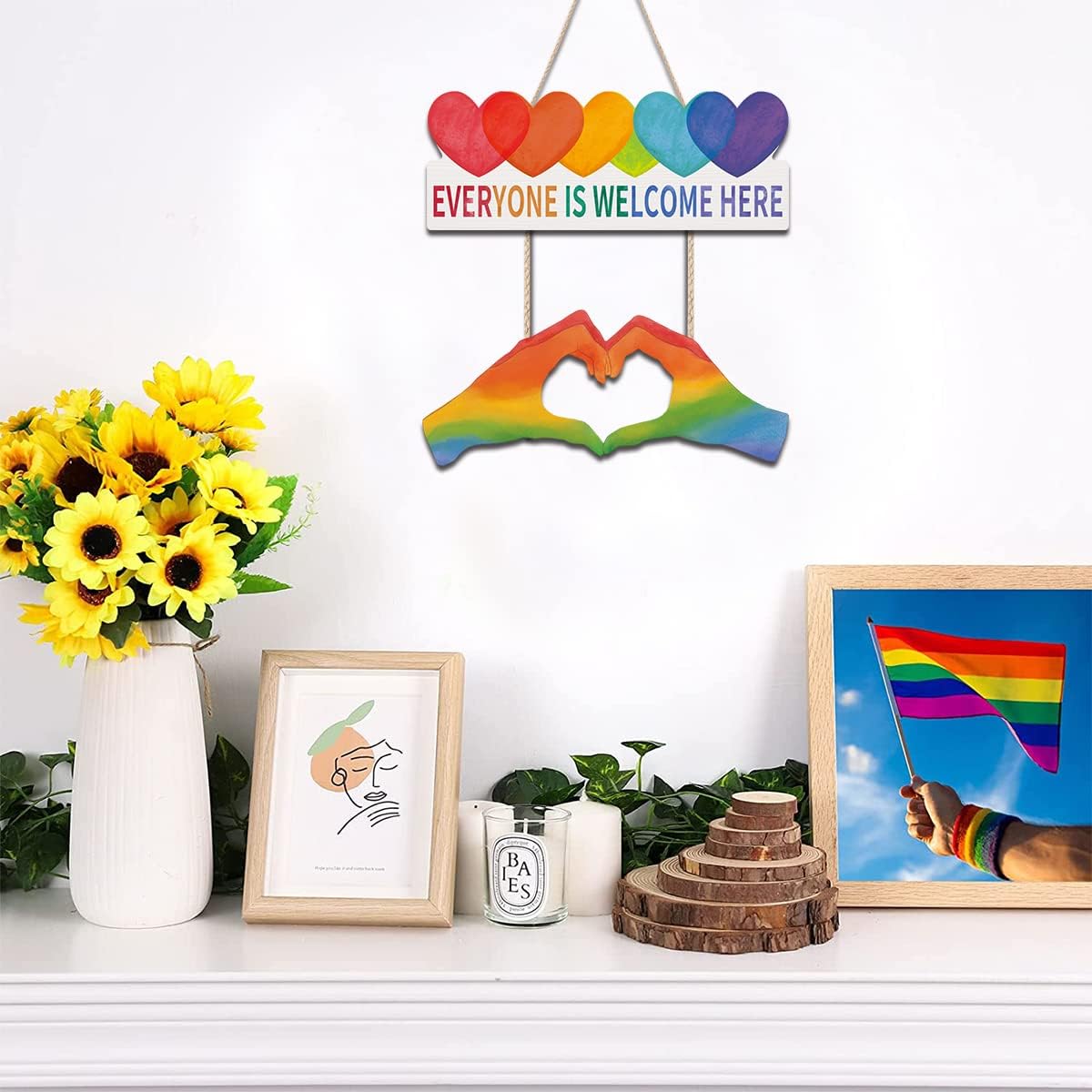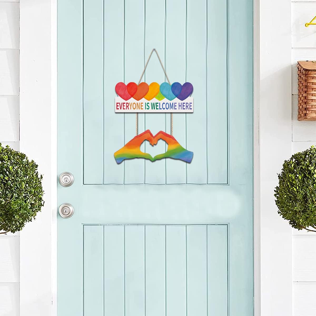 Gay Pride LGBT Front Door Sign, Wooden Everyone Is Welcome Here