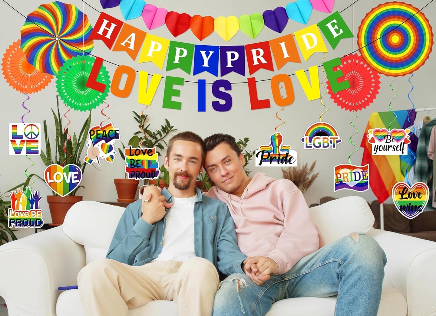 Gay Pride Rainbow Party Decorations - Happy Pride/Love Is Love Banner Garland