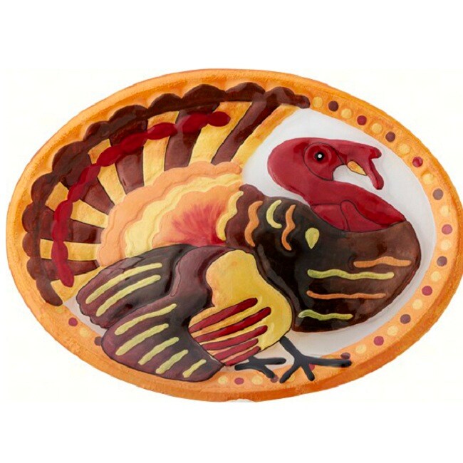 GC Home & Garden 14" Yellow and Red Turkey Design Hand Made Oval Platter
