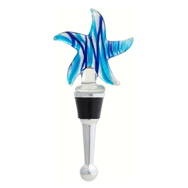 GC Home & Garden 5" Blue and Clear Starfish Hand Blown Glass Bottle Stopper