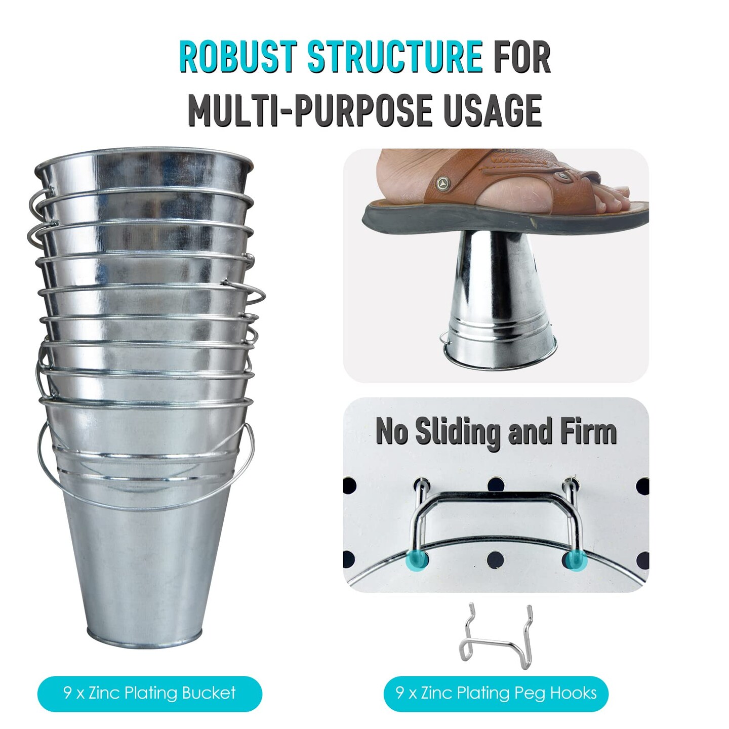 G.CORE 9 Pack Silver Pegboard Cups with Hooks, Peg Board Hooks Assortment Organizer Accessory, Various Tools Storage Arrange System Kit, for Garage Craft Workshop Workbench Hobby Office