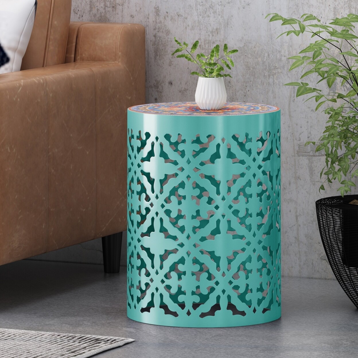 GDFStudio Azaela Indoor Lace Cut Side Table with Tile Top