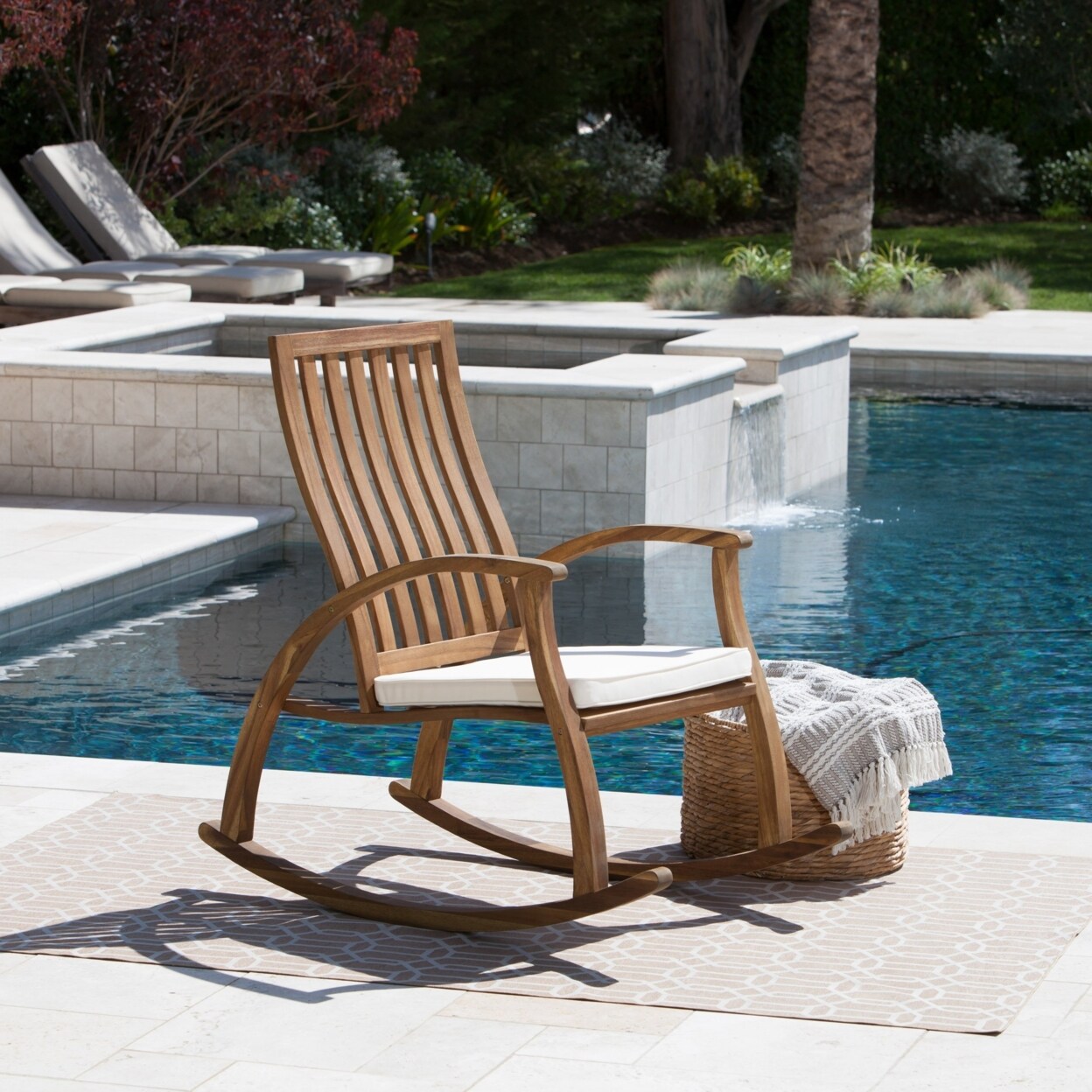 GDFStudio Caleb Outdoor Acacia Wood Rocking Chair with Water Resistant Cushion