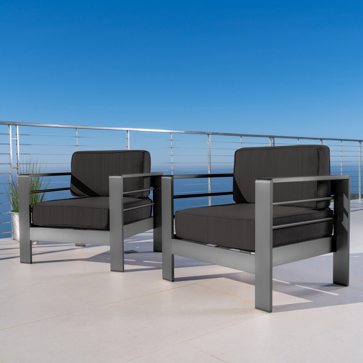 GDFStudio Crested Bay Outdoor Gray Aluminum Club Chairs with Water Resistant Cushions