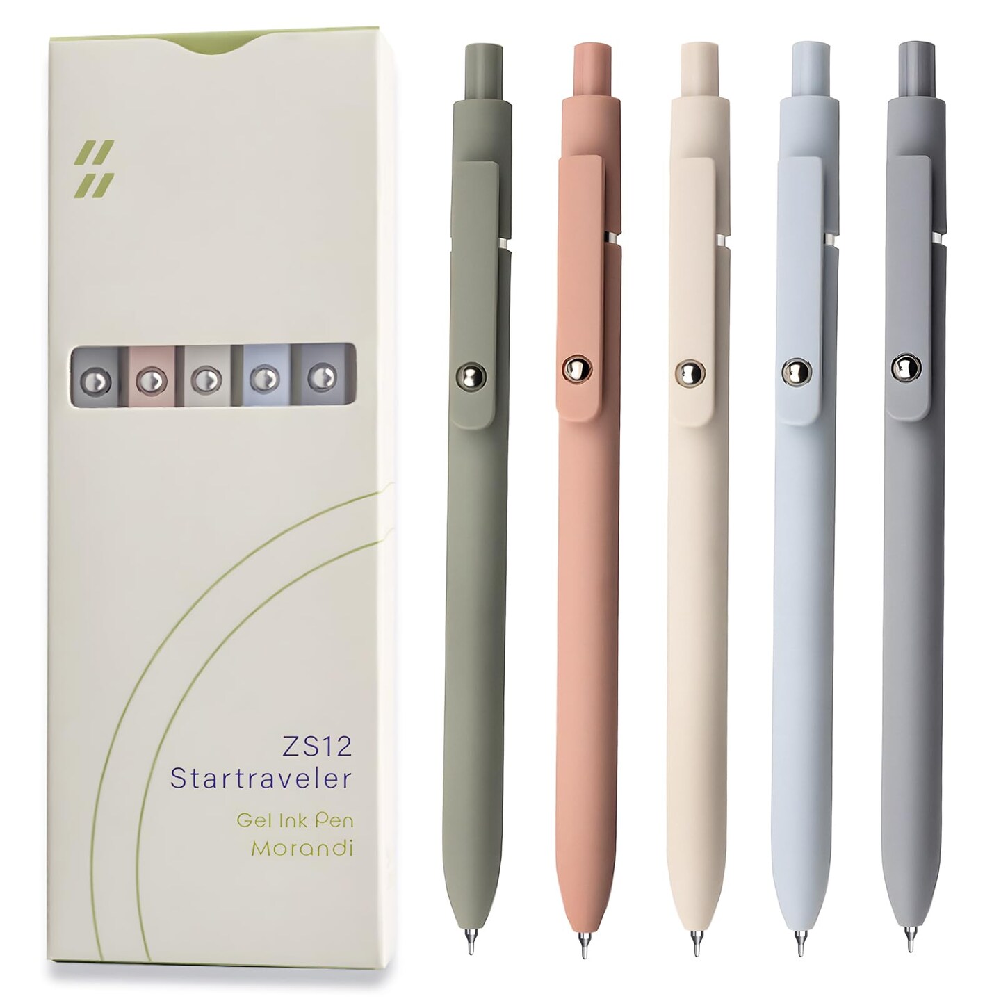 Gel Pens, 5 Pcs 0.5mm Black Ink Pens Fine Point Smooth Writing Pens, High-End Series Pens for Journaling Note Taking, Cute Office School Supplies Gifts for Women Men (Morandi)& Organizer Storage Tote Bag