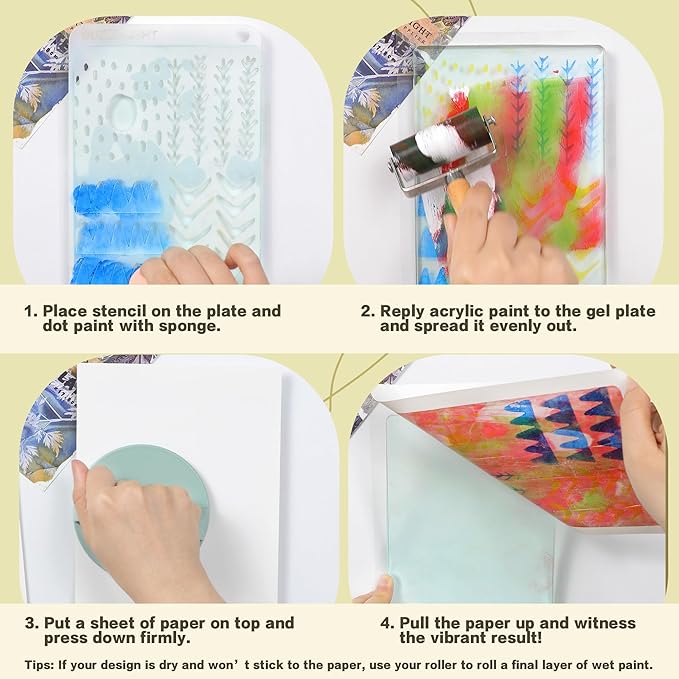 Gel Printing Plate kit, Complete Printmaking Set with 8”X10” Gelatin Plate, Brayer, Printmaking Paper, Acrylic Paint and Essential Tools for Mixed Media Art, Monoprinting, Card Making