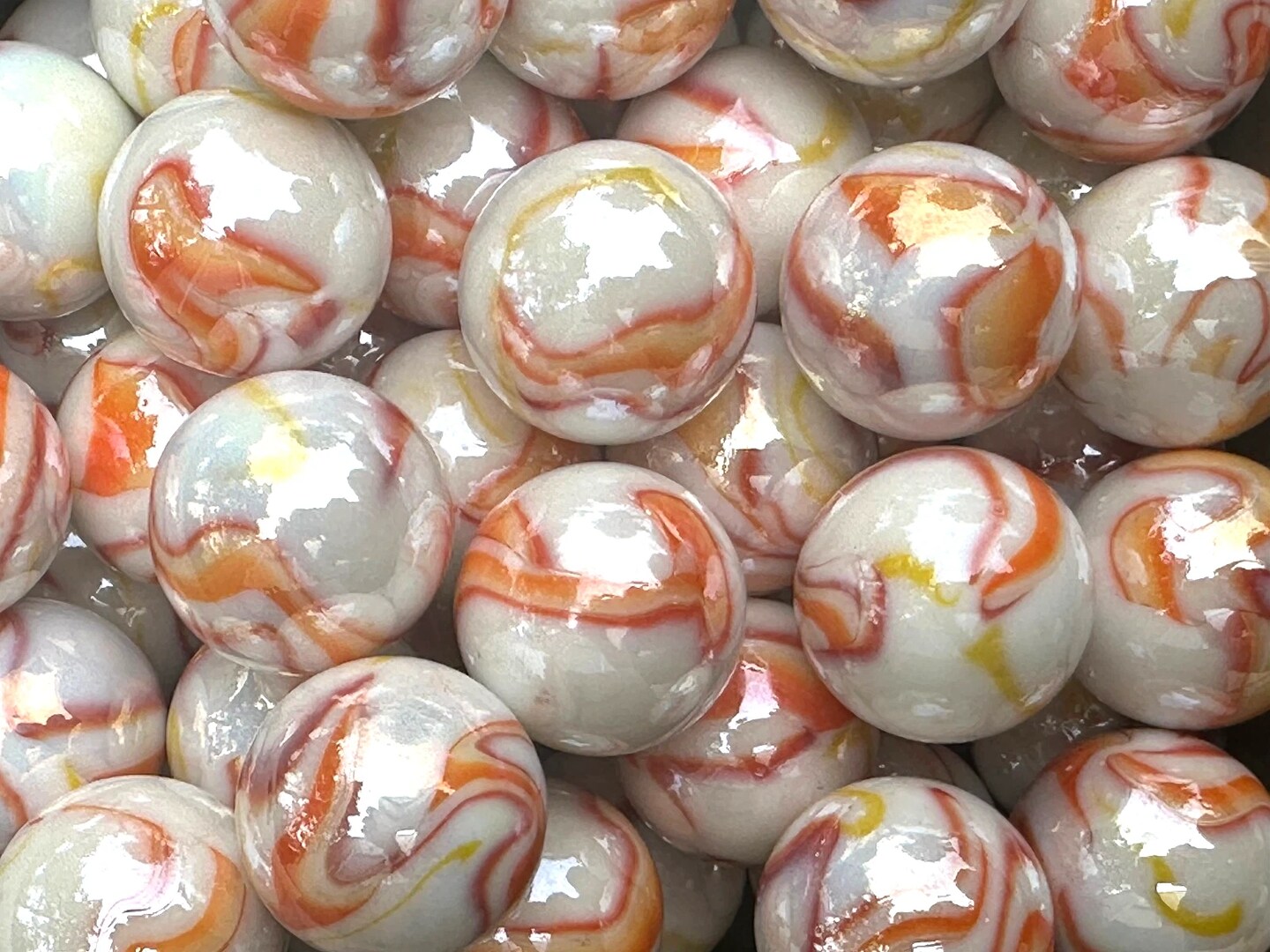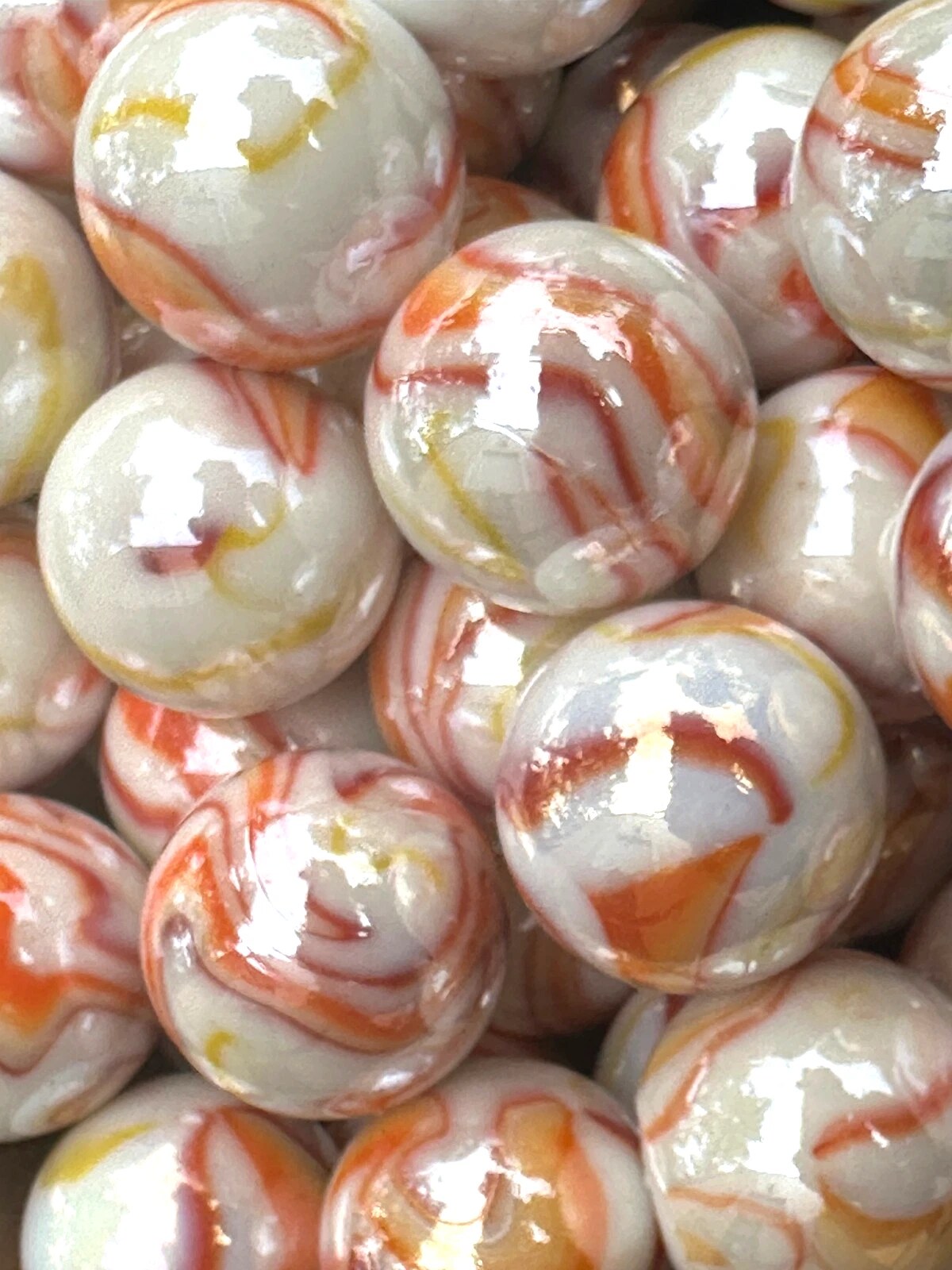 GELATO White/Orange/Yellow Glass Marbles 25mm (1 inch) SHOOTER Taw Lot