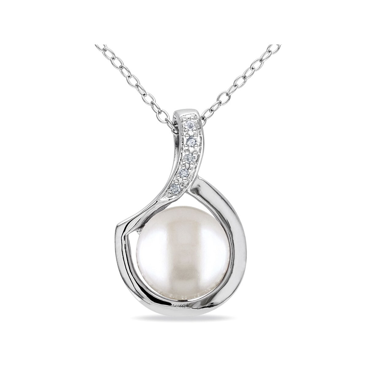 Gem And Harmony Freshwater Cultured 9-9.5mm Pearl Pendant Necklace in Sterling Silver with Chain