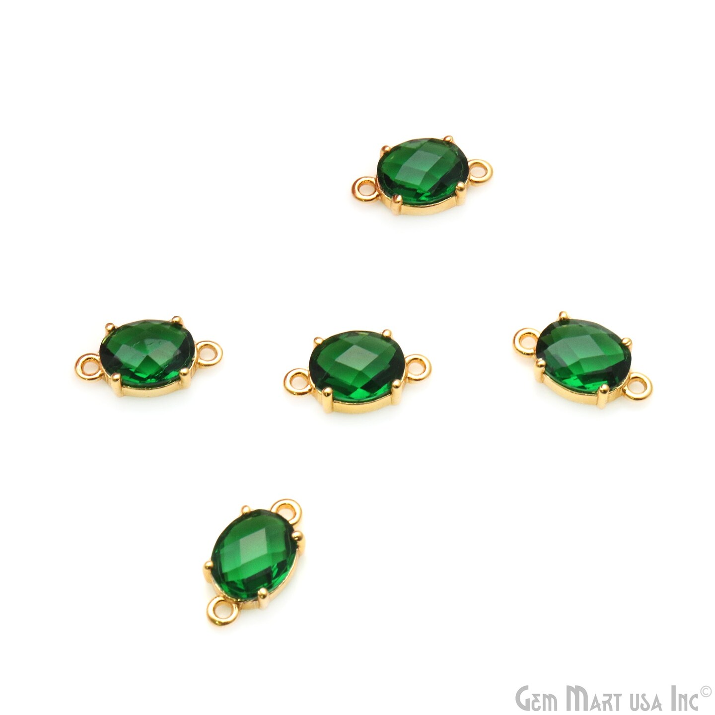 Gemstone Bracelet Charm, Oval 7x9mm Prong Setting, Gold Plated Double Bail, Connector Pendant, GemMartUSA (50235)