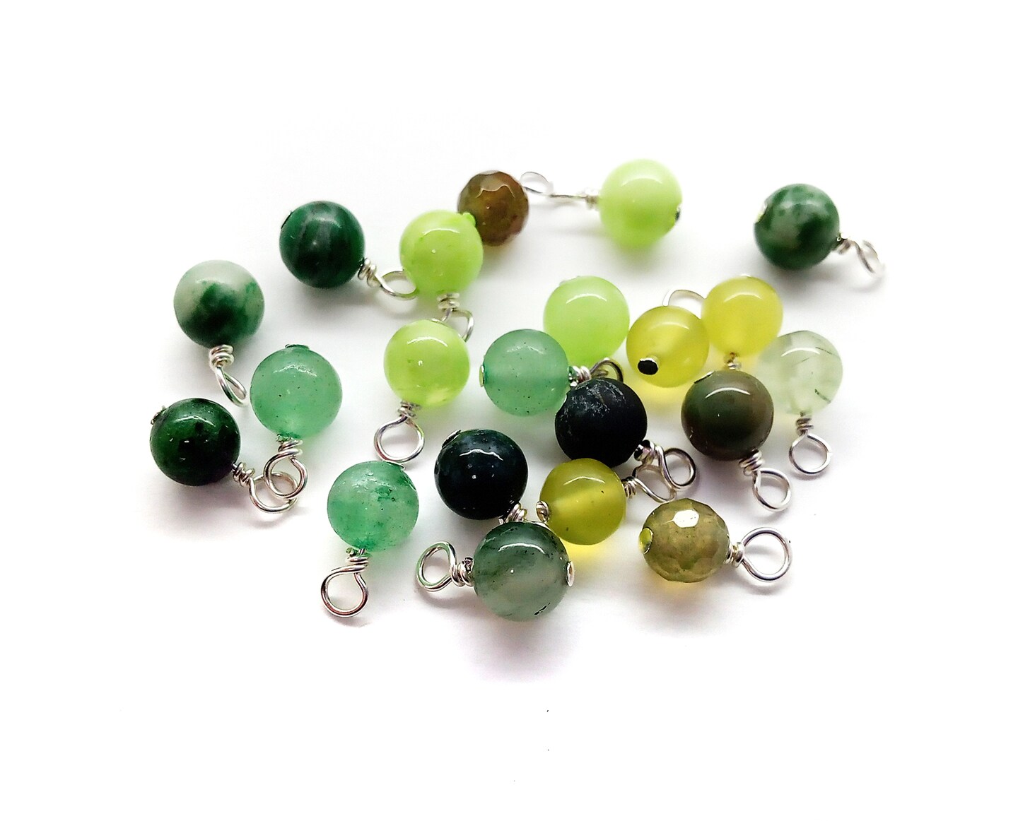 Gemstone Charm Mix, 20 pcs, 5mm-6mm Green Bead Dangle Assortment, Adorabilities
