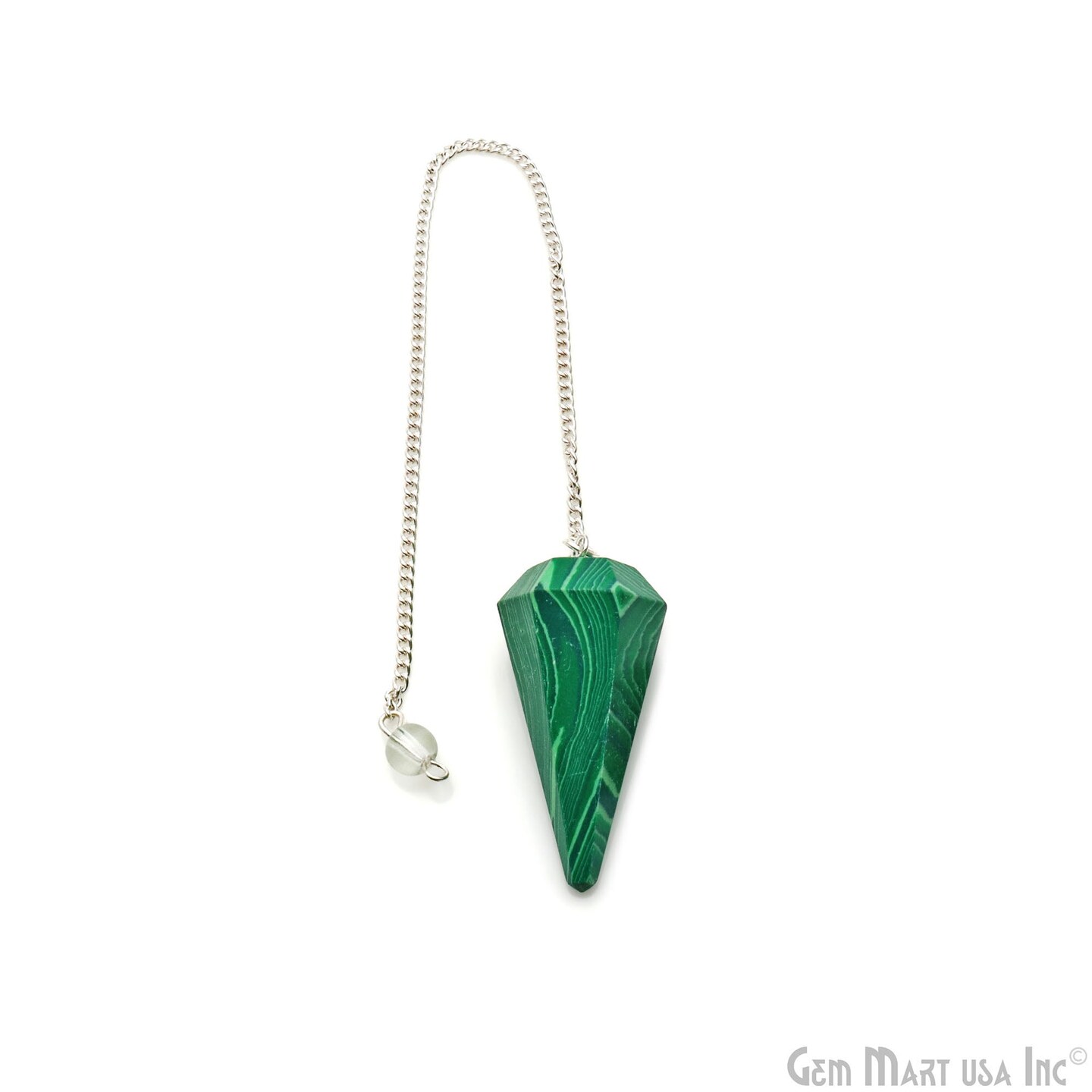 Gemstone Dowsing Pendulum Pendant, 44x16mm Silver Plated Handmade Pendant with Chain, GemMartUSA (14007)