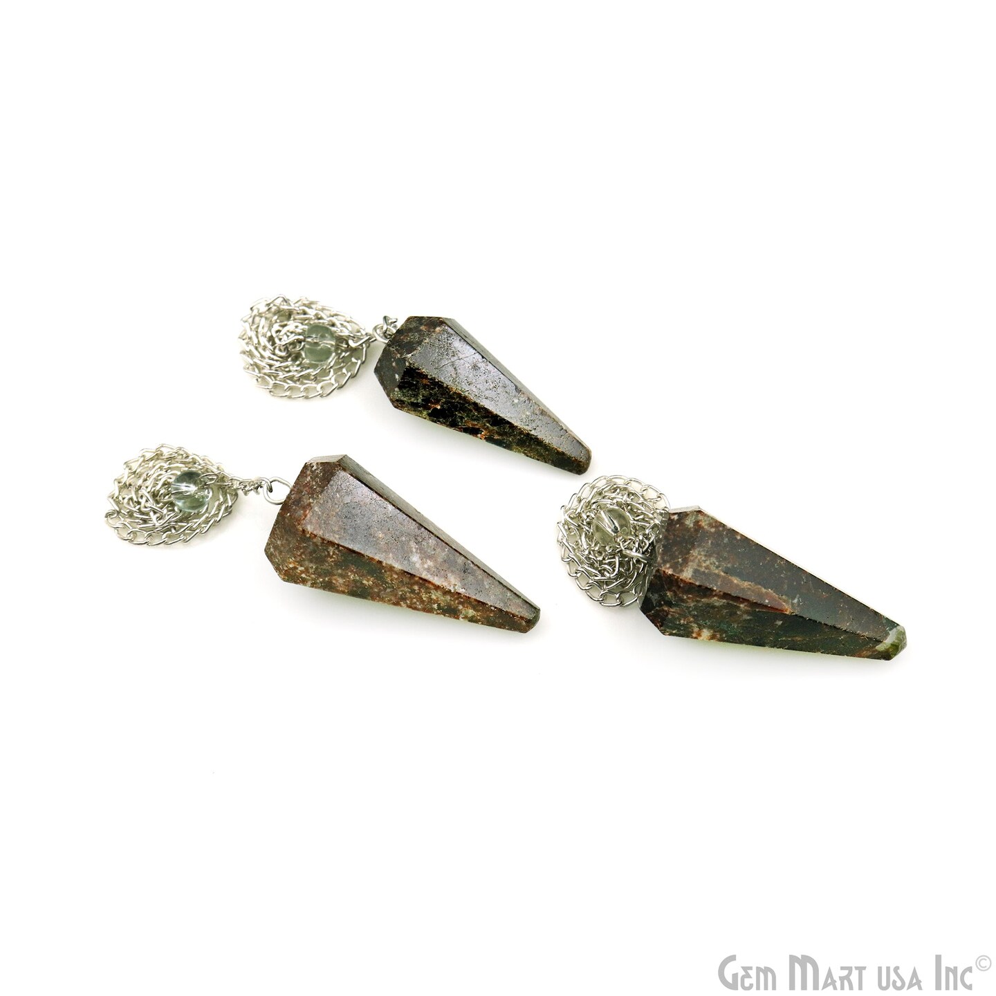 Gemstone Dowsing Pendulum Pendant, 44x16mm Silver Plated Handmade Pendant with Chain, GemMartUSA (14007)