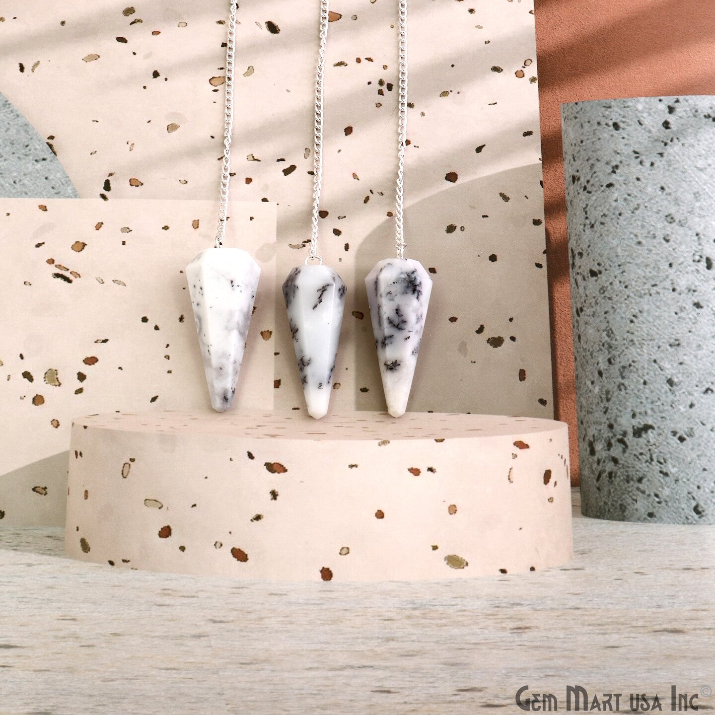Gemstone Dowsing Pendulum Pendant, 44x16mm Silver Plated Handmade Pendant with Chain, GemMartUSA (14007)
