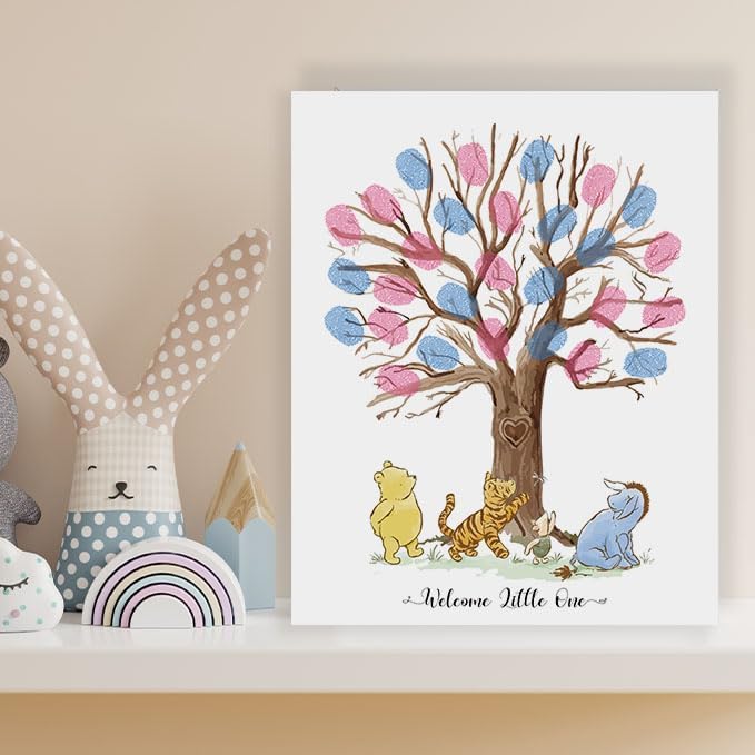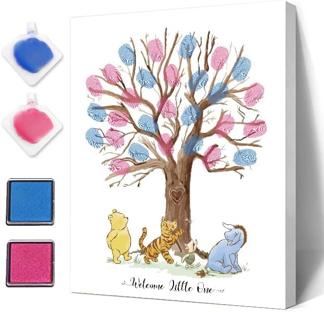 Gender Reveal Fingerprint Tree, Winnie Baby Shower Gender Reveal Game, Winnie Baby Shower Guest Book, Baby Shower Keepsake, Gender Reveal Party Decorations