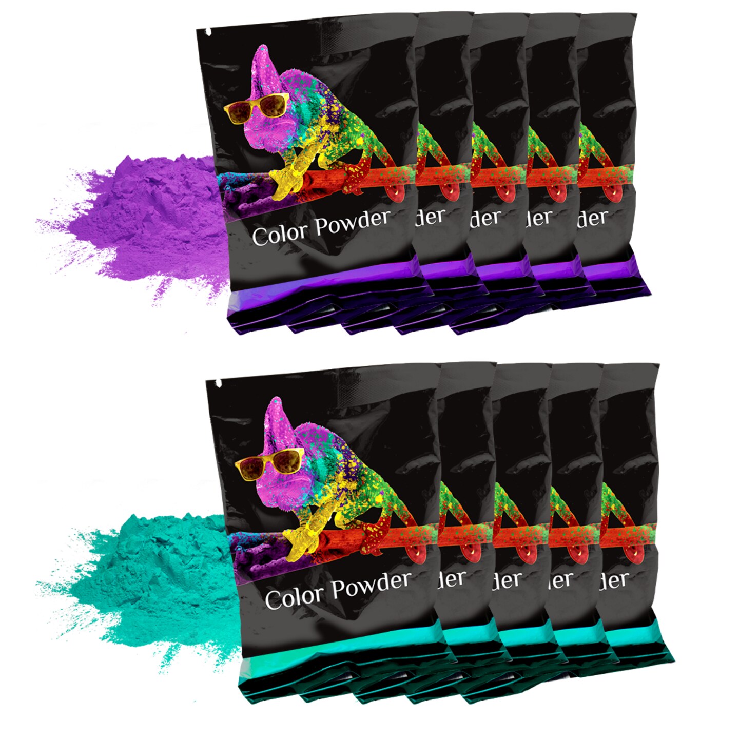 Gender Reveal Powder | 70 gram Packets | 5 Purple, 5 Teal