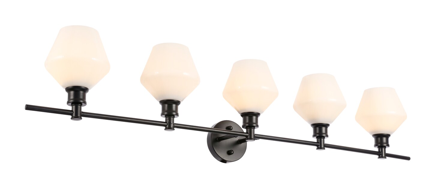 Gene 5 light Black and Frosted white glass Wall sconce