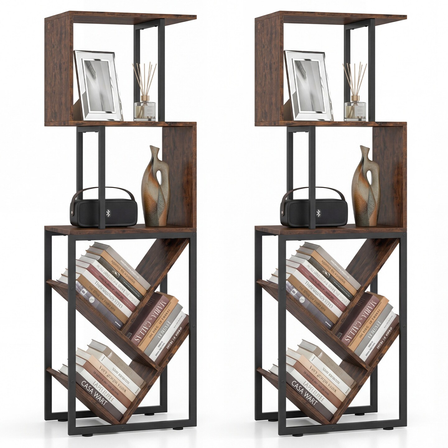 Geometric 6-Tier Tree Bookcase Freestanding S-Shape Display Shelf