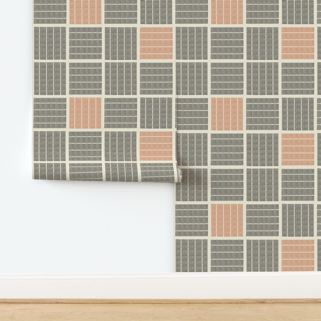 Geometric Block Print Bold Lines Squares Blocks Large Scale Minimalism Simple Modern Hand Drawn Style Orange Black Shapes Bold Minimalism Lines Custom Removable Wallpaper by Spoonflower Peel & Stick Wallpaper 2FT Wide