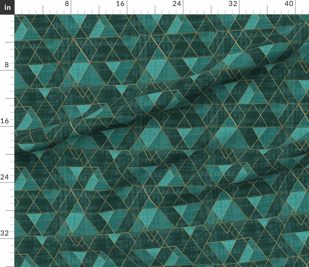 Geometric Modern Triangles Abstract Blue Green Gold Boho Glam Custom Printed Fabric by Spoonflower Various Fabrics by the Yard or Fat Quarter