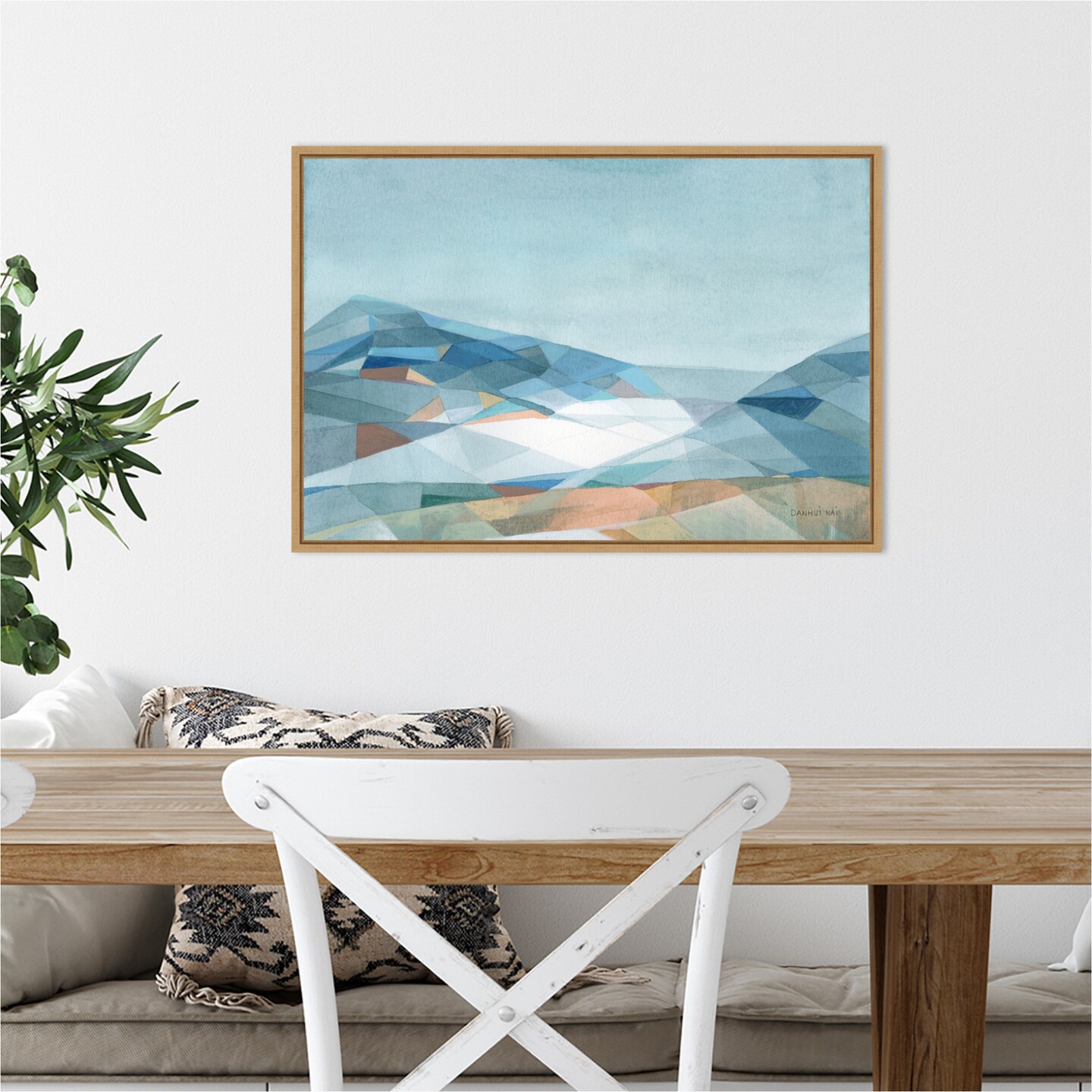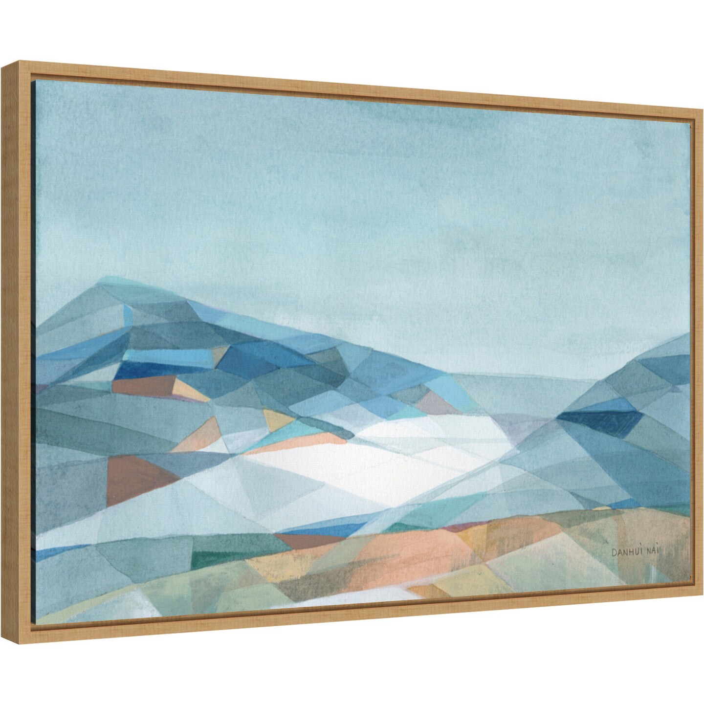 Geometric Mountain by Danhui Nai 23-in. W x 16-in. H. Canvas Wall Art Print Framed in Natural