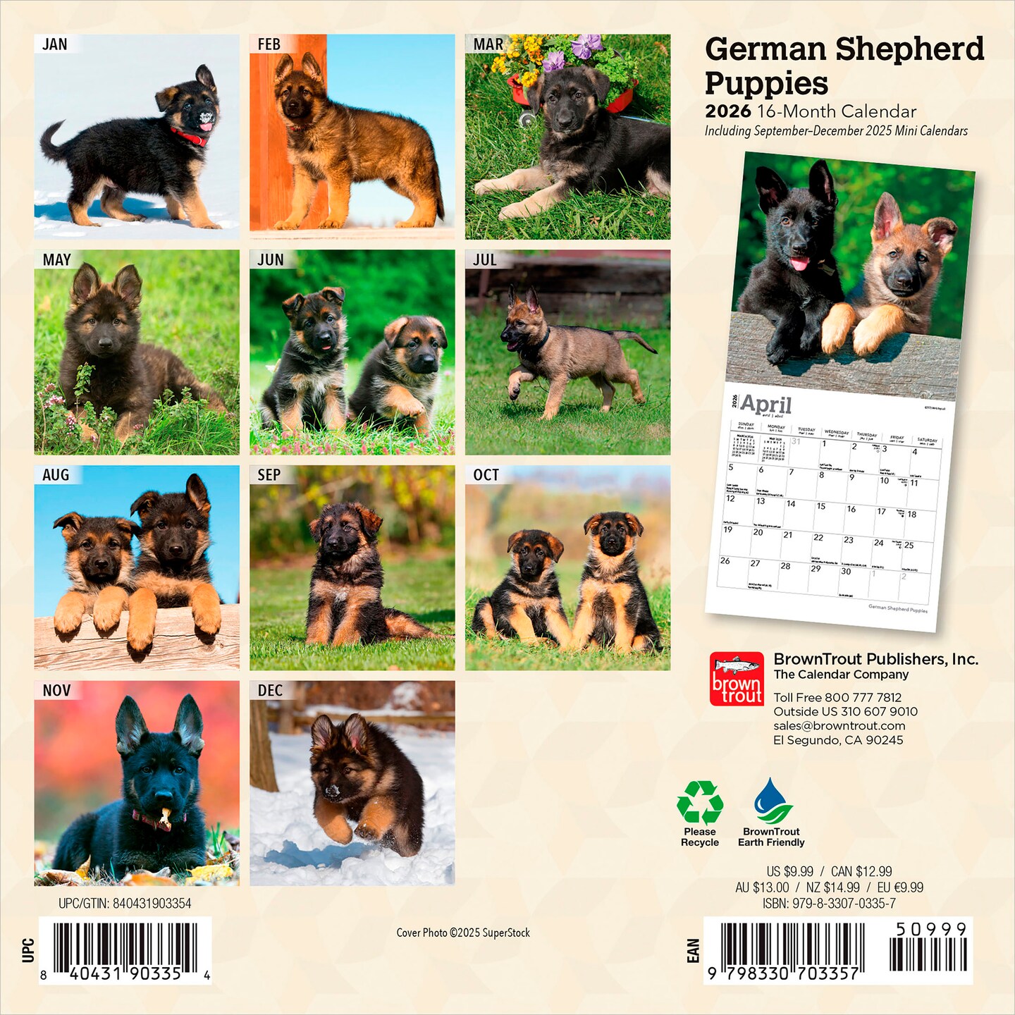 German Shepherd Puppies | 2026 7 x 14 Inch (Hanging) Monthly Mini Wall Calendar
