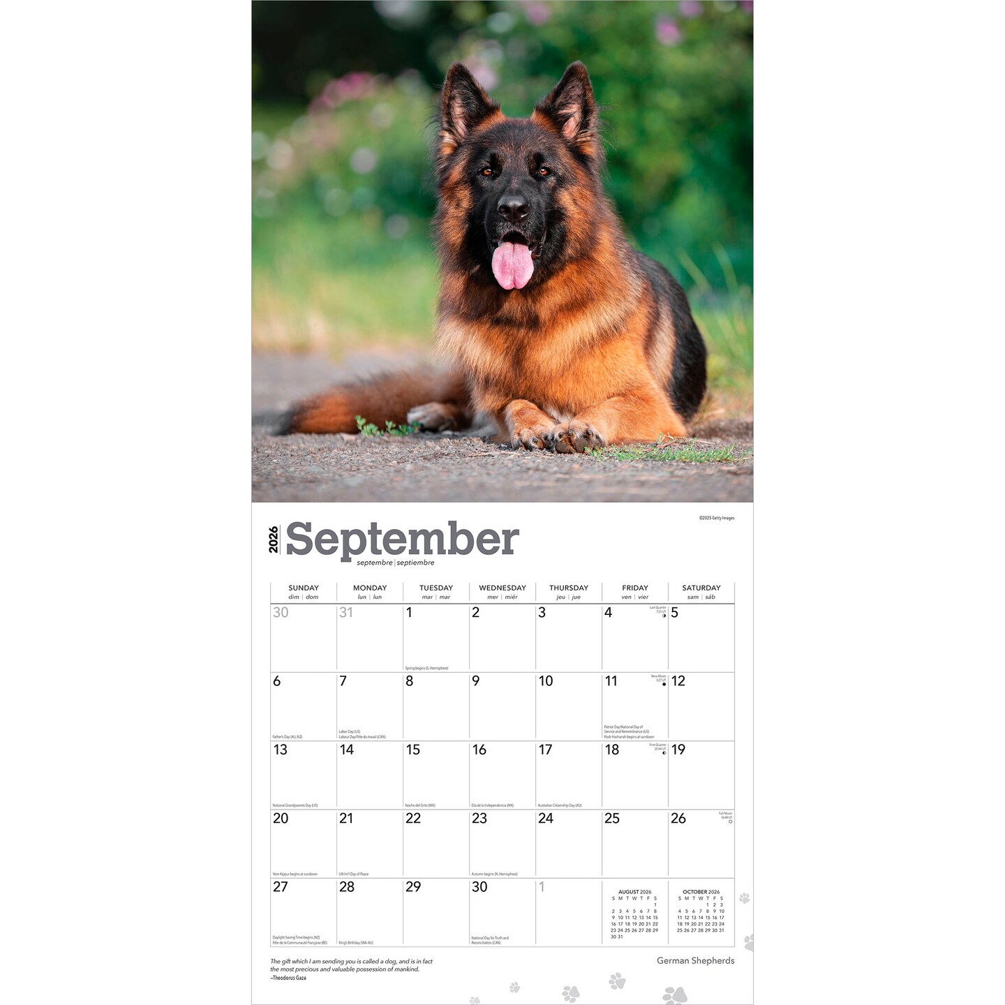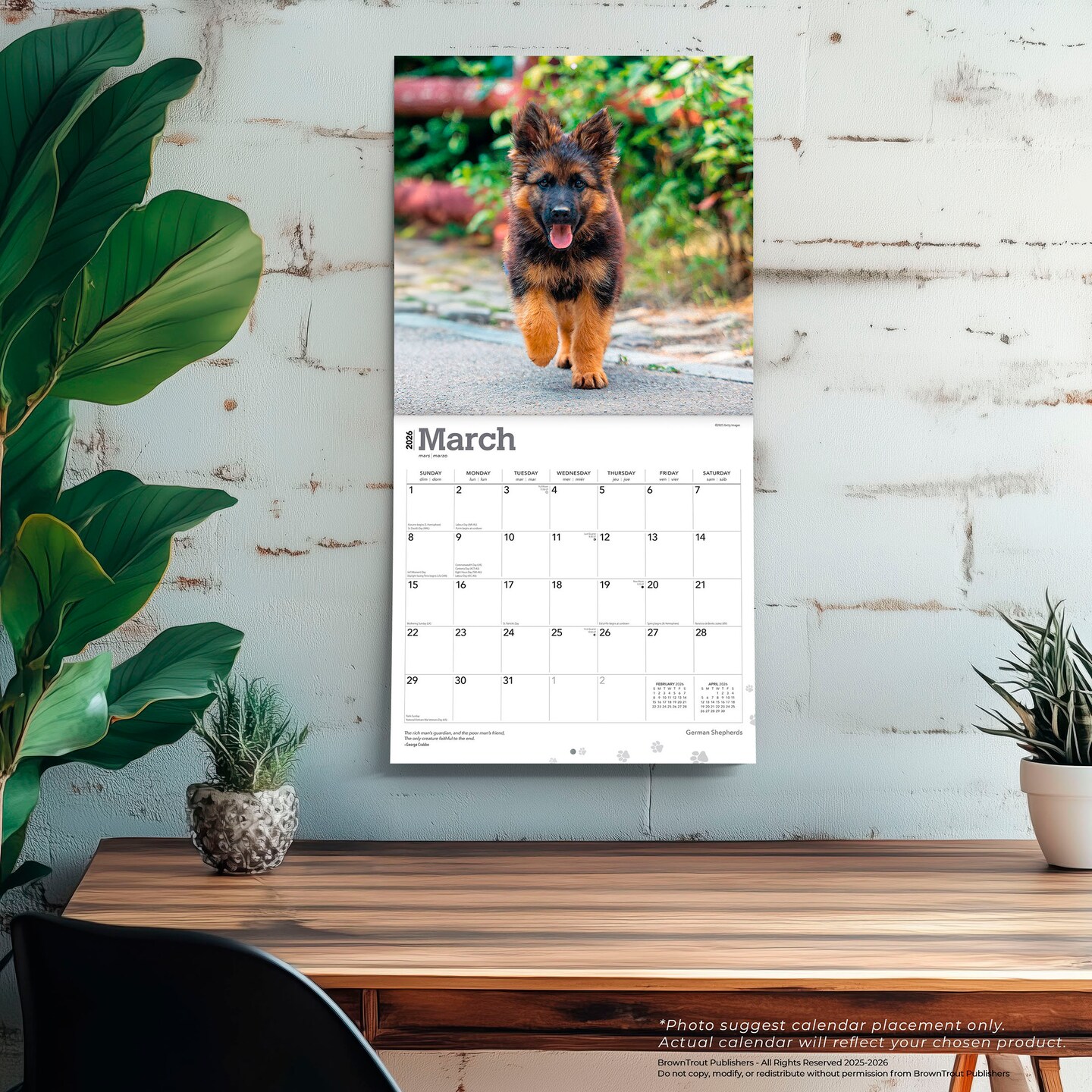 German Shepherds | 2026 12 x 24 Inch (Hanging) Monthly Square Wall Calendar | Plastic-Free