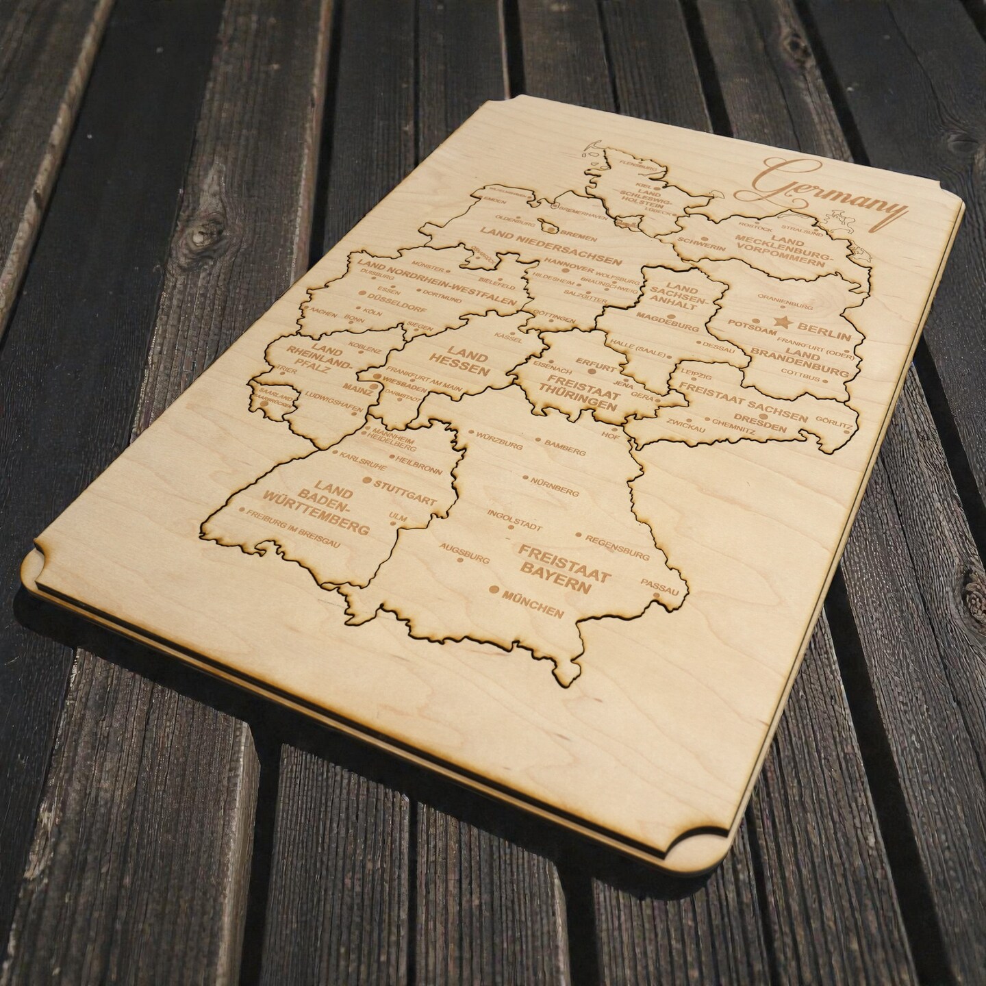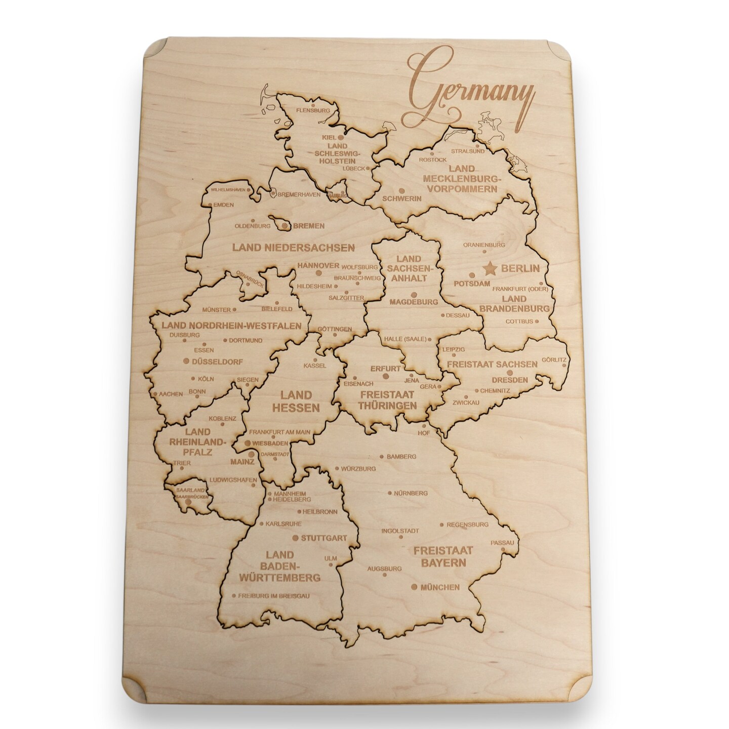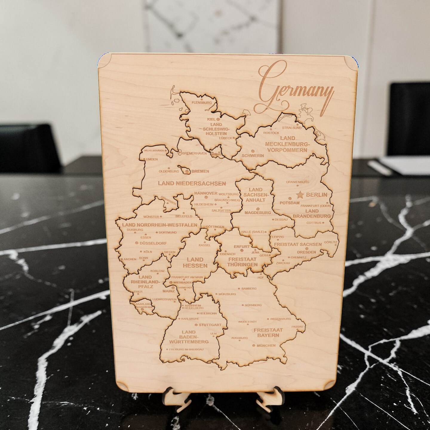 Germany Puzzle Map - Art Kit - Raw Wood 12x18 Inches - 16 Pieces - With Stand
