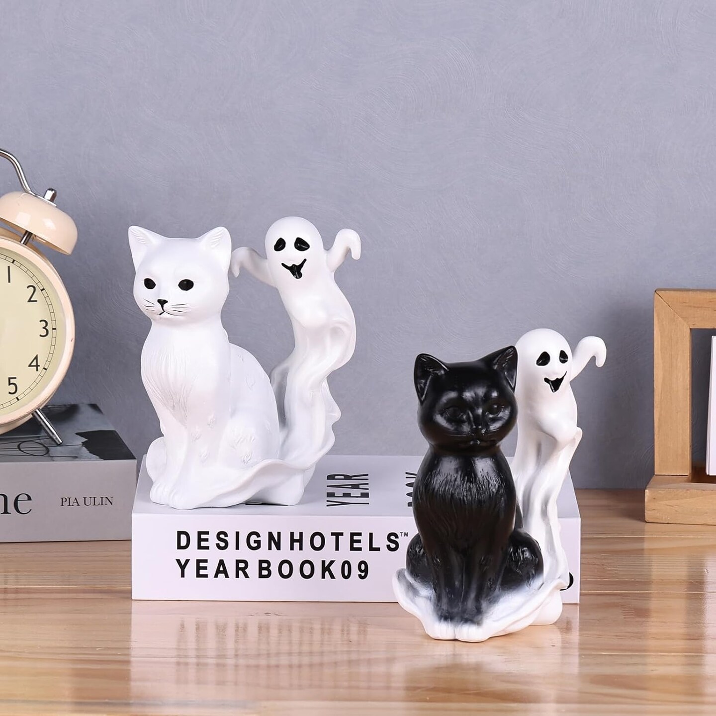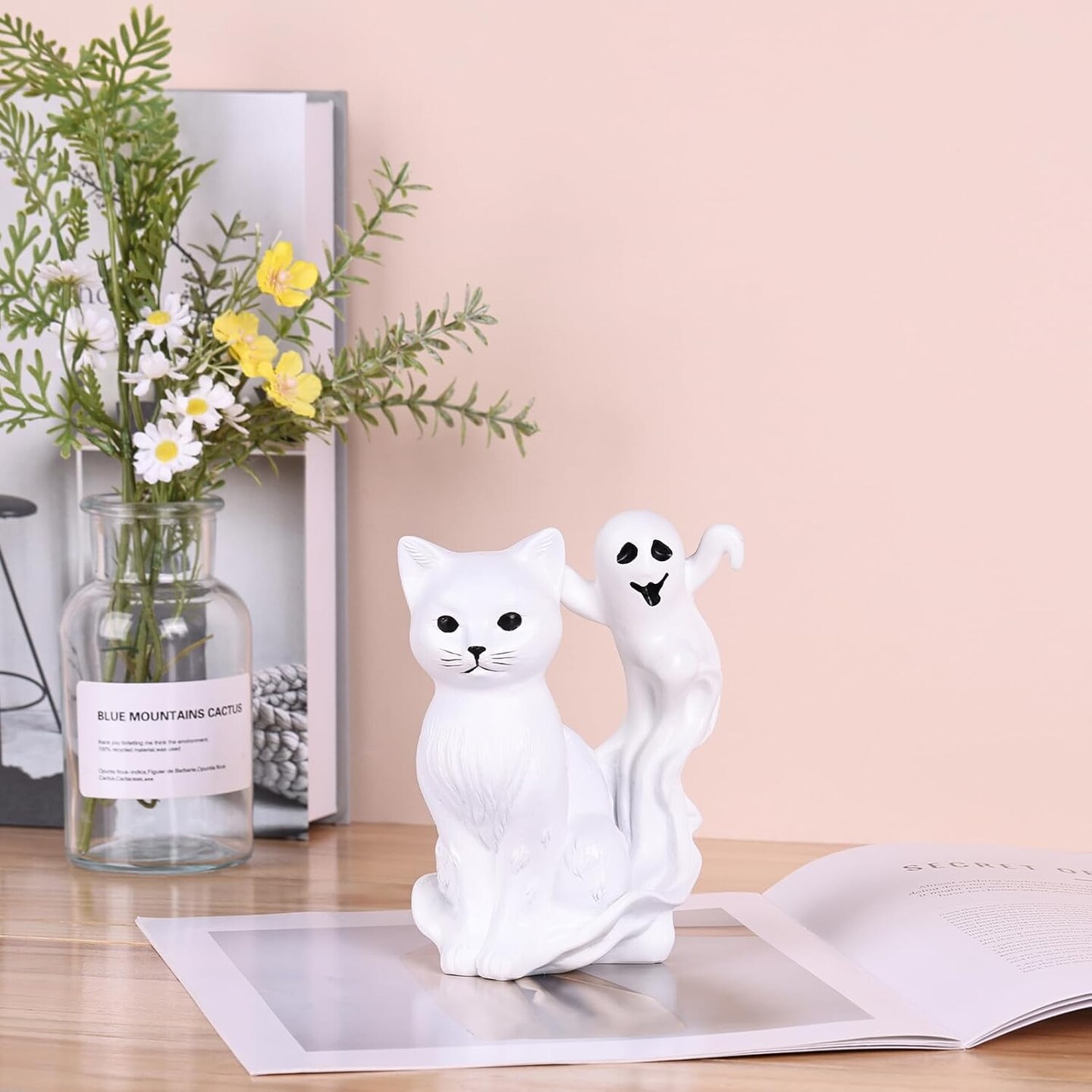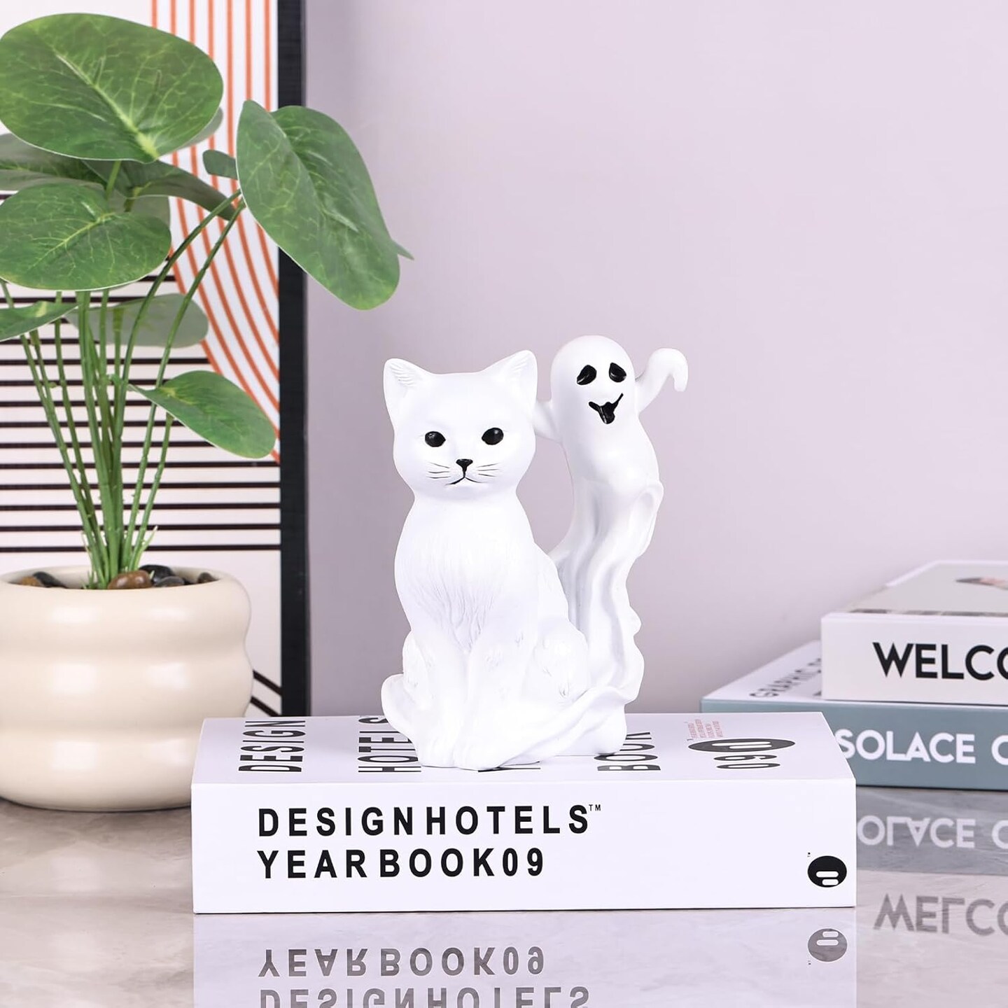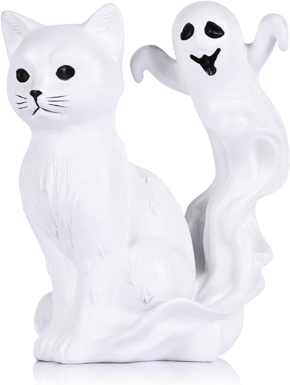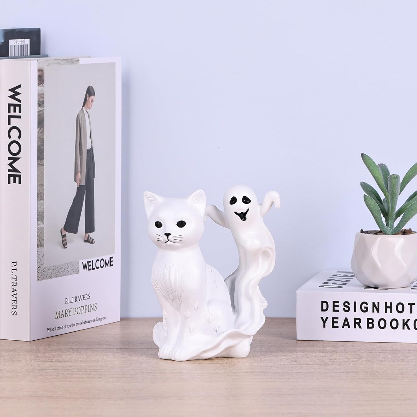Ghost Cat Statue Halloween Indoor Spooky Decor