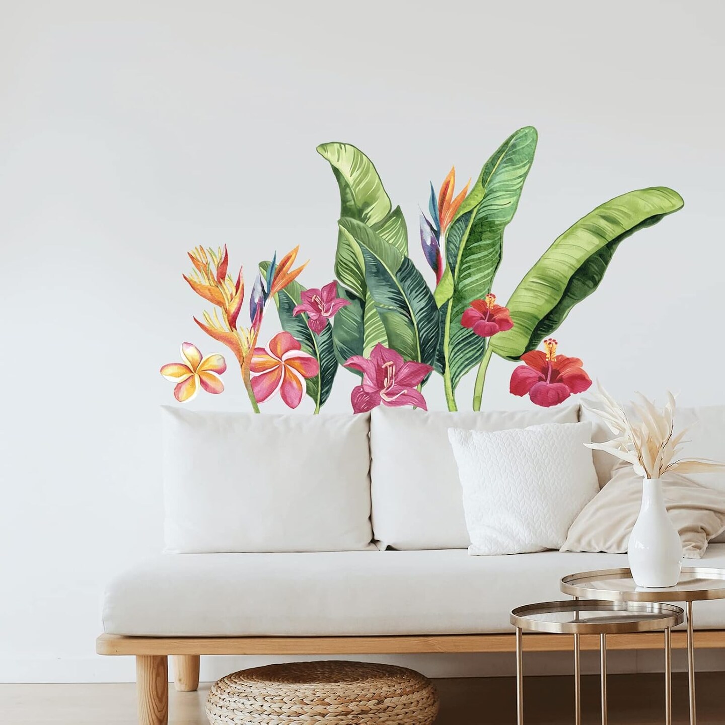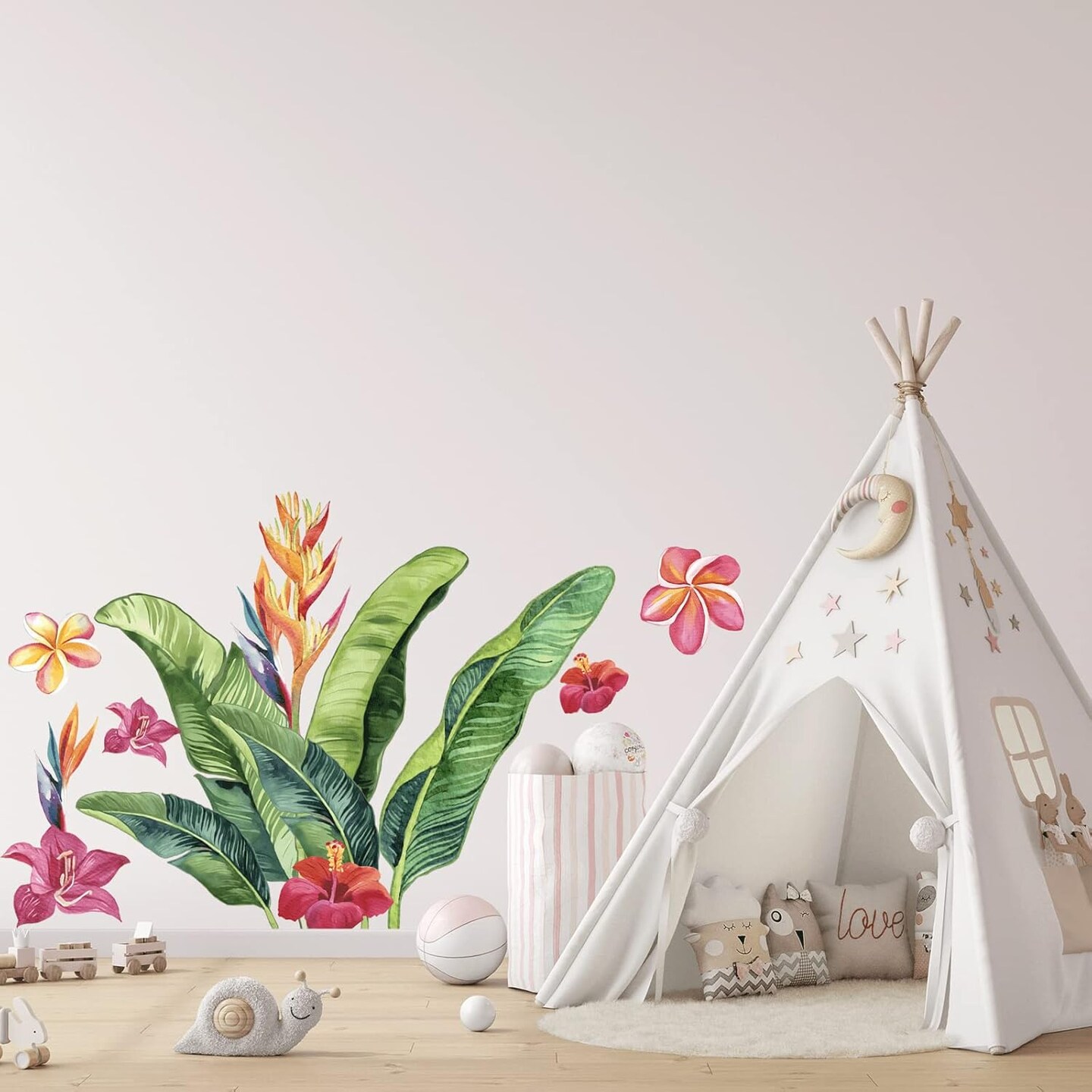 Giant Tropical Flower Palm Leaf Wall Stickers (Green)