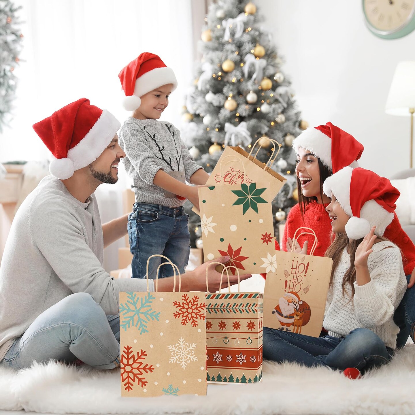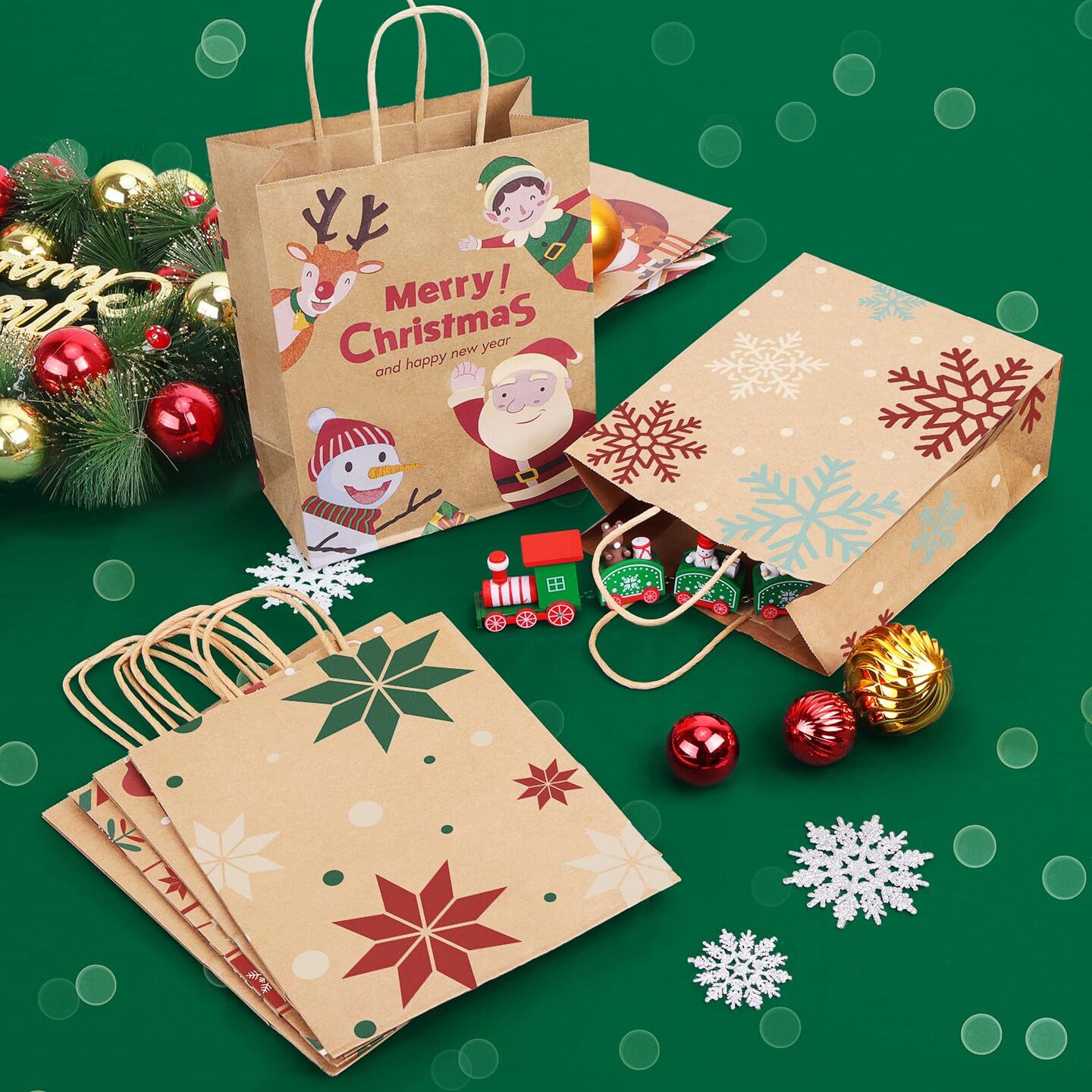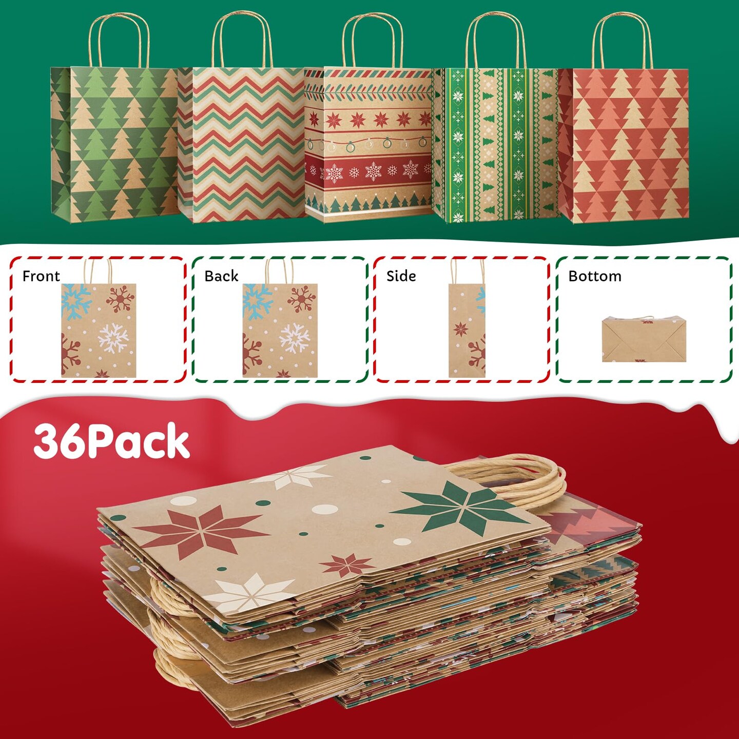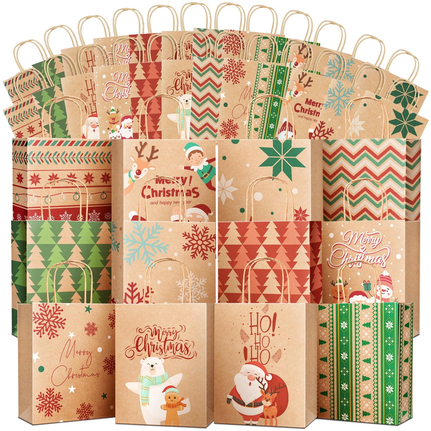 Gift Bags Medium Size with Handles - Holiday Decorations, Gift Bags Assortment with 12 Designs for Presents, Shopping and Parties - Bags Kraft Paper 36 Pack