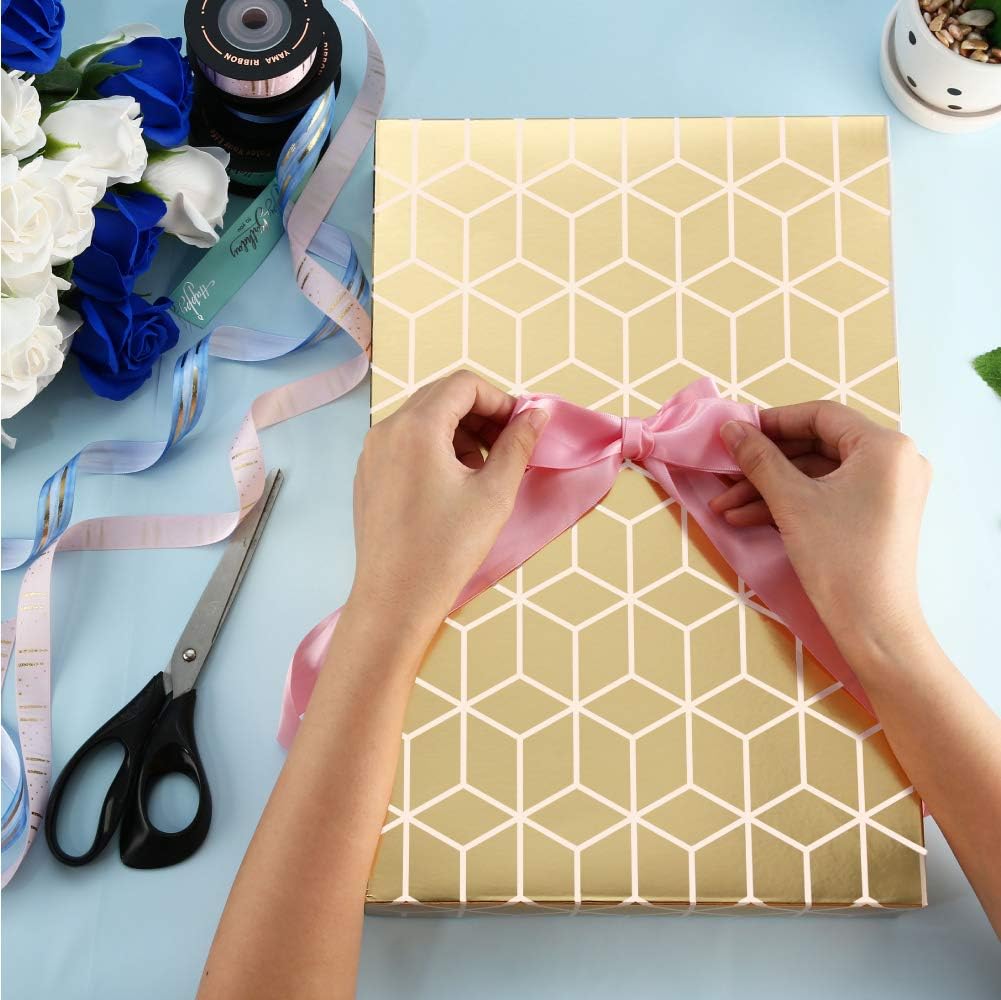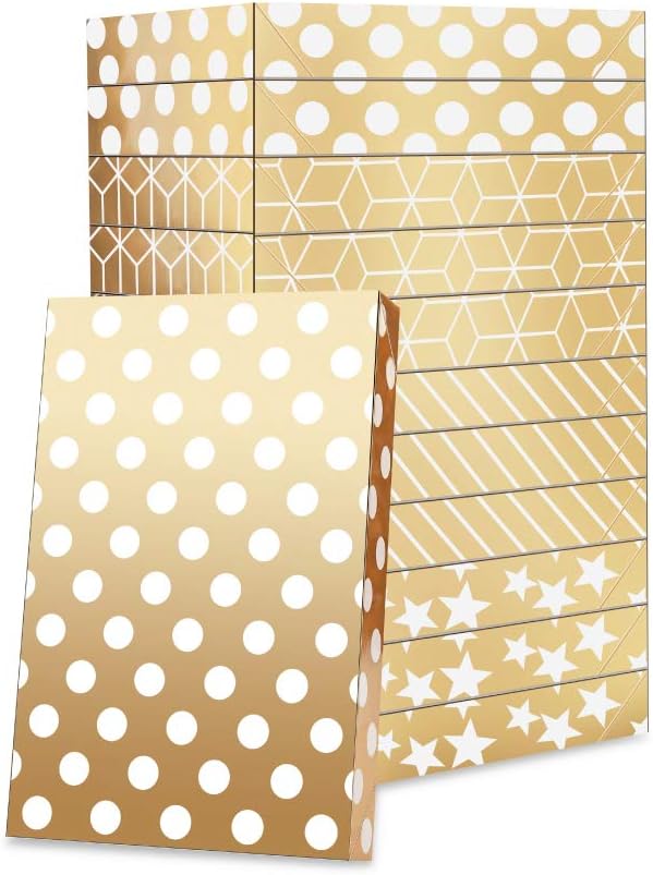Gift Boxes for Clothes 14.5x9.5x2 Inches, Shirt Gift Boxes, Large Gold Gift Boxes with Lids (Pack of 12: Polka Dots, Stars, Stripes, Cubes)