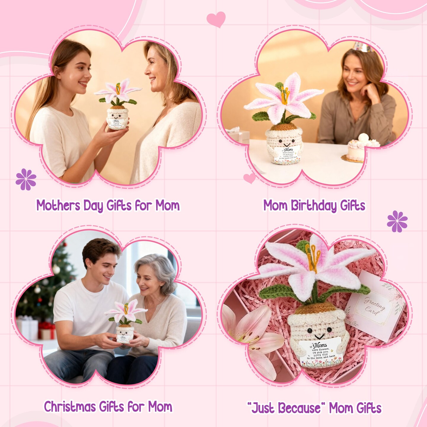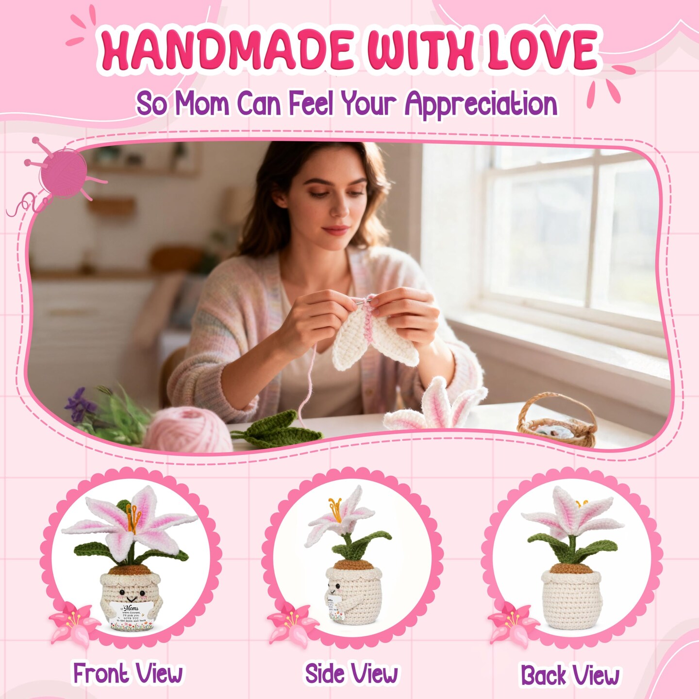 Gifts for Mom - Emotional Support Crochet Lily Flower - Proud of You Motivational Positive Mothers Day Birthday Gifts for Mom from Daughter Son, Mother Gift, Mama Gift