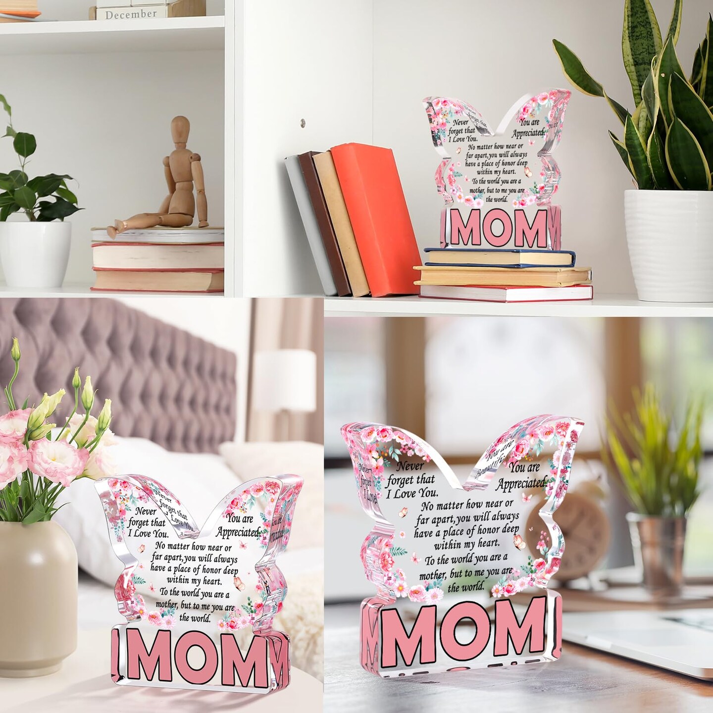 Gifts for Mom Stocking Stuffers Mother Gifts from Daughter Son, Mom Birthday Gift Ideas Unique Best Mom Ever Gift New Mama Single Mom Stepmom Butterfly Shaped Acrylic Plaque Sign