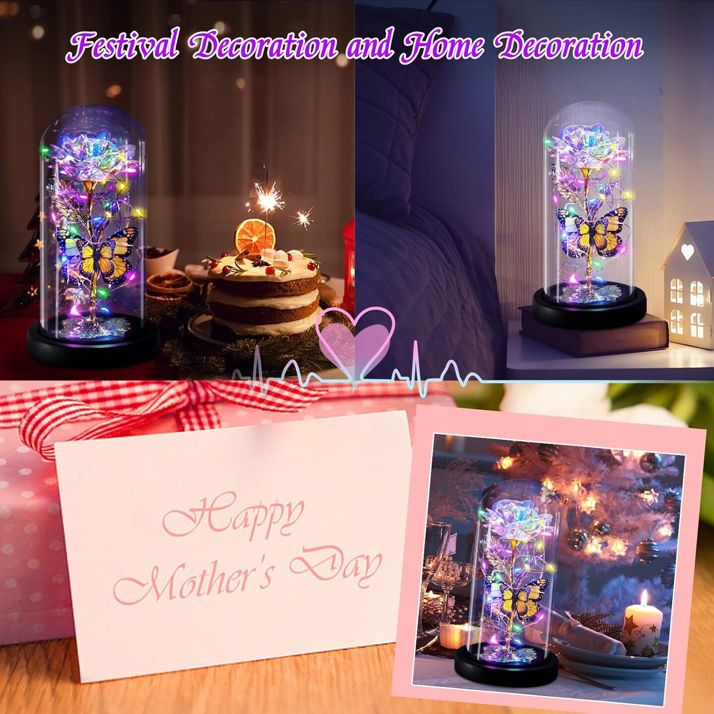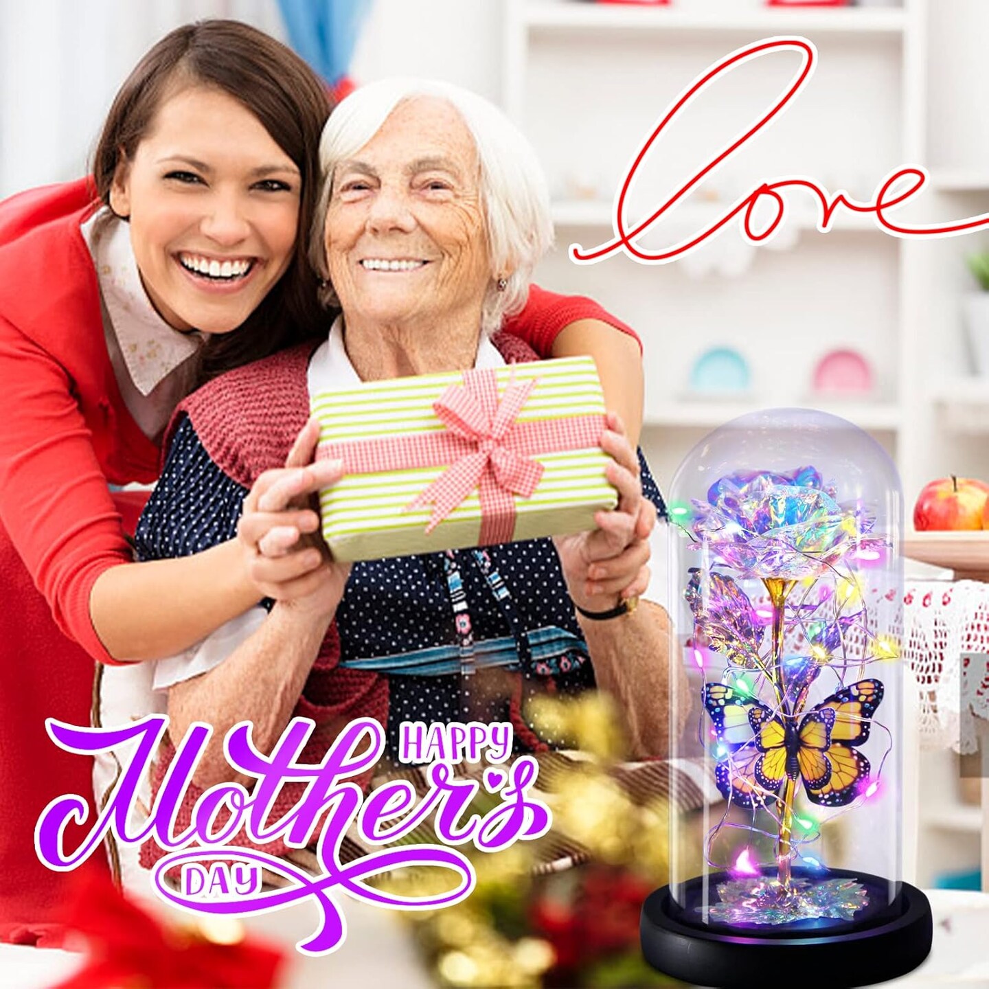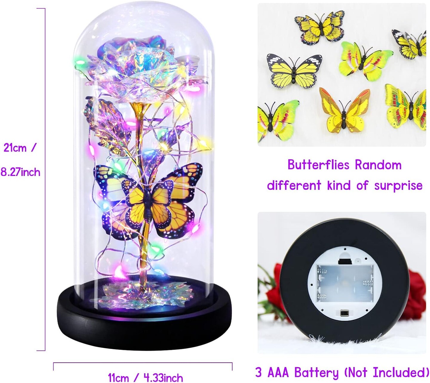 Gifts for Women Galaxy Butterfly Rose in Glass Dome, Light Up Forever Roses Birthday Gifts for Mom Grandma Wife, Eternal Rose Gifts for Mother's Day Valentines Anniversary Thanksgiving Gifts