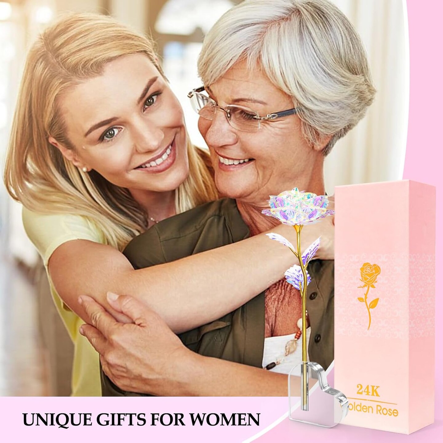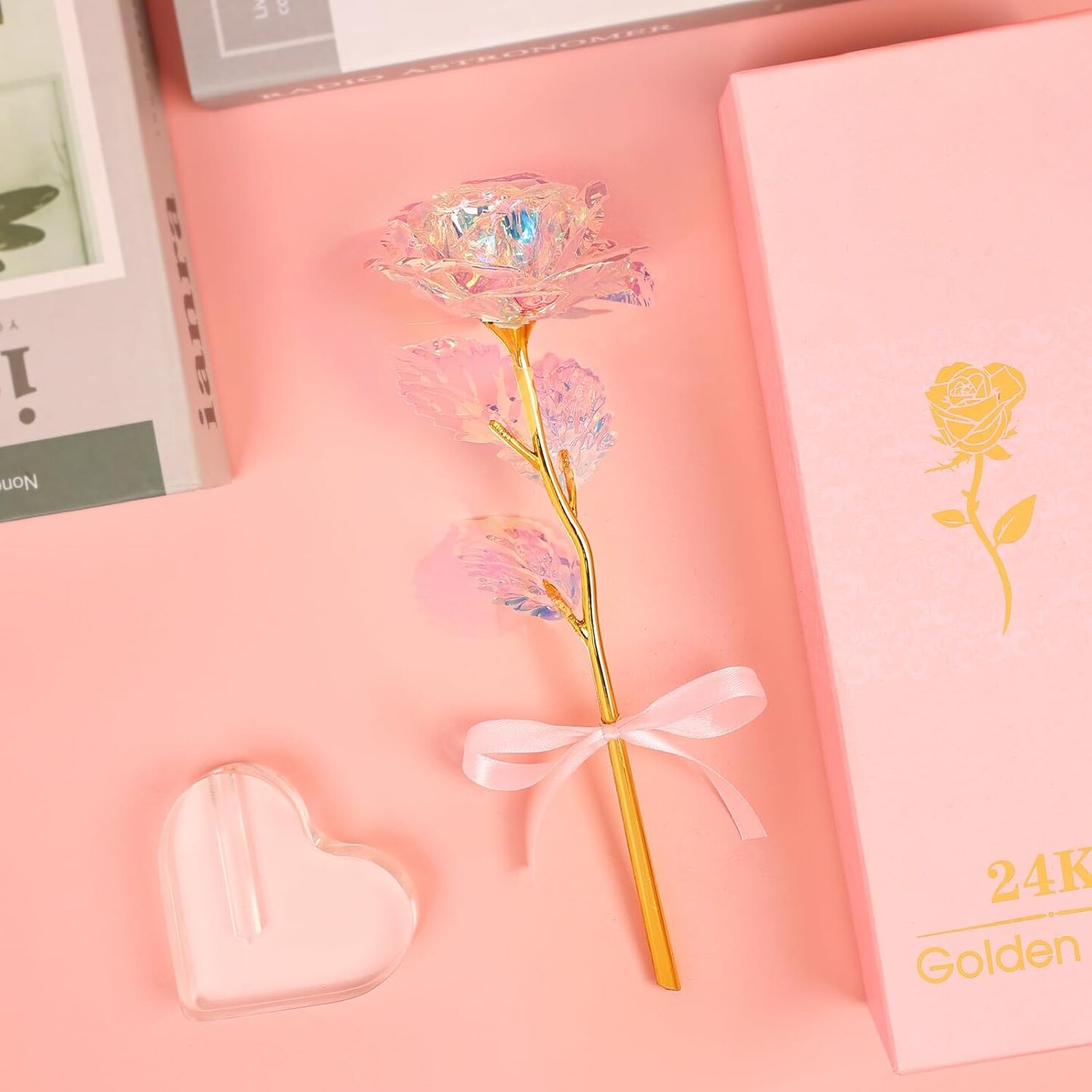 Gifts for Women Galaxy Rose Glass Flowers with Heart-Shaped Base Eternal Roses Forever Flowers Mothers Day Birthday Gifts for Women, Mom, Wife, Sister, Daughters, Kids