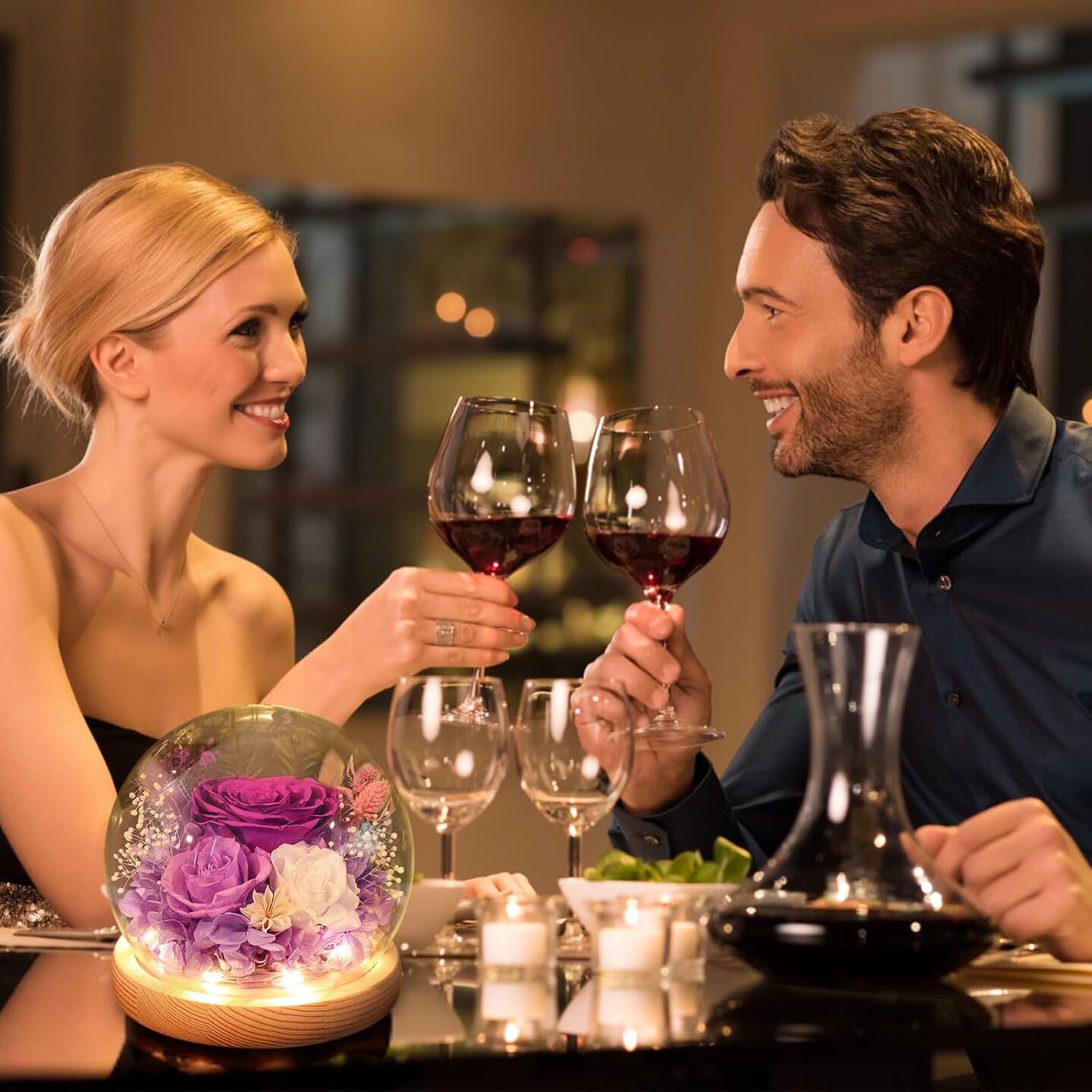 Gifts for Women Preserved Rose Forever Flower in Glass Dome Fresh Flowers for Delivery Prime Mothers Day Birthday Gifts for Mom Grandma Wife Daughter Sister Purple Roses