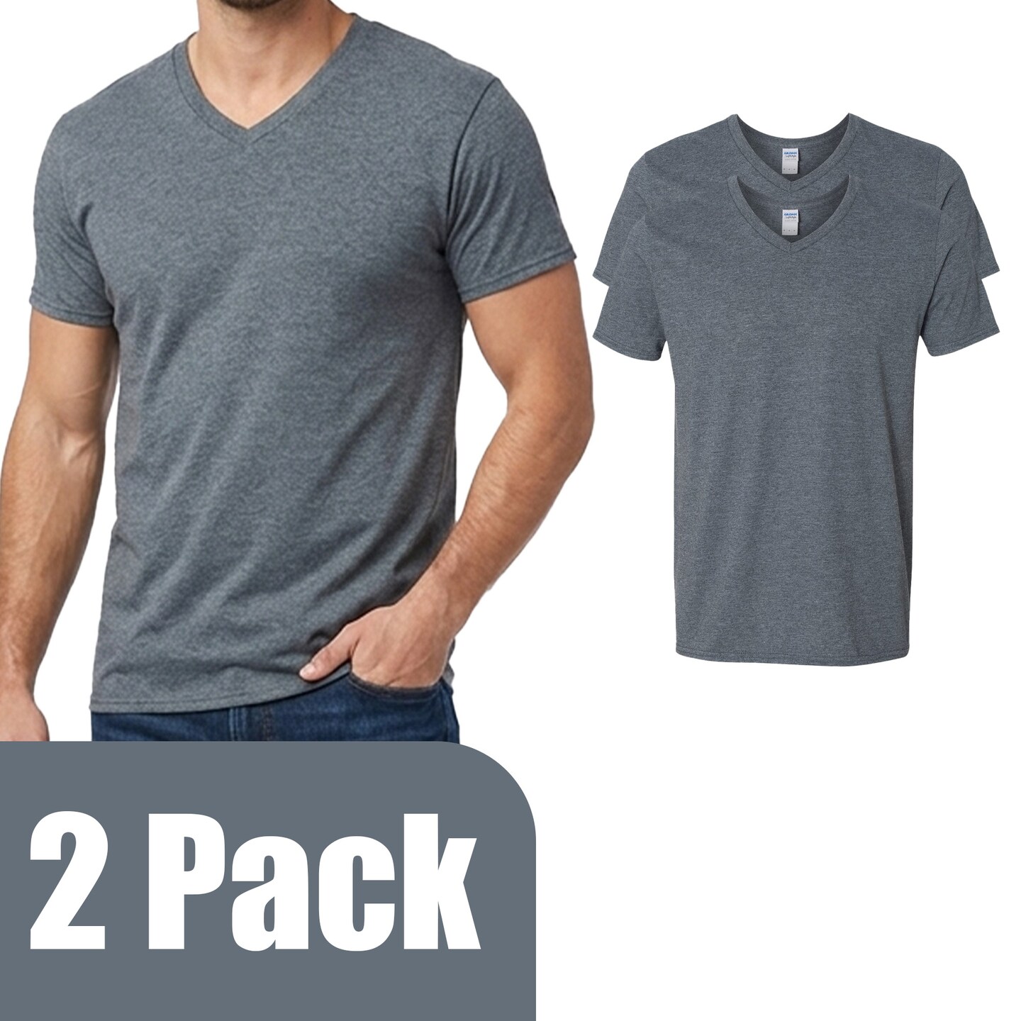 Gildan Men's Softstyle V-Neck Blank T-Shirt for DIY Craft & Custom Printing, Dark Heather, 2–14 Pack