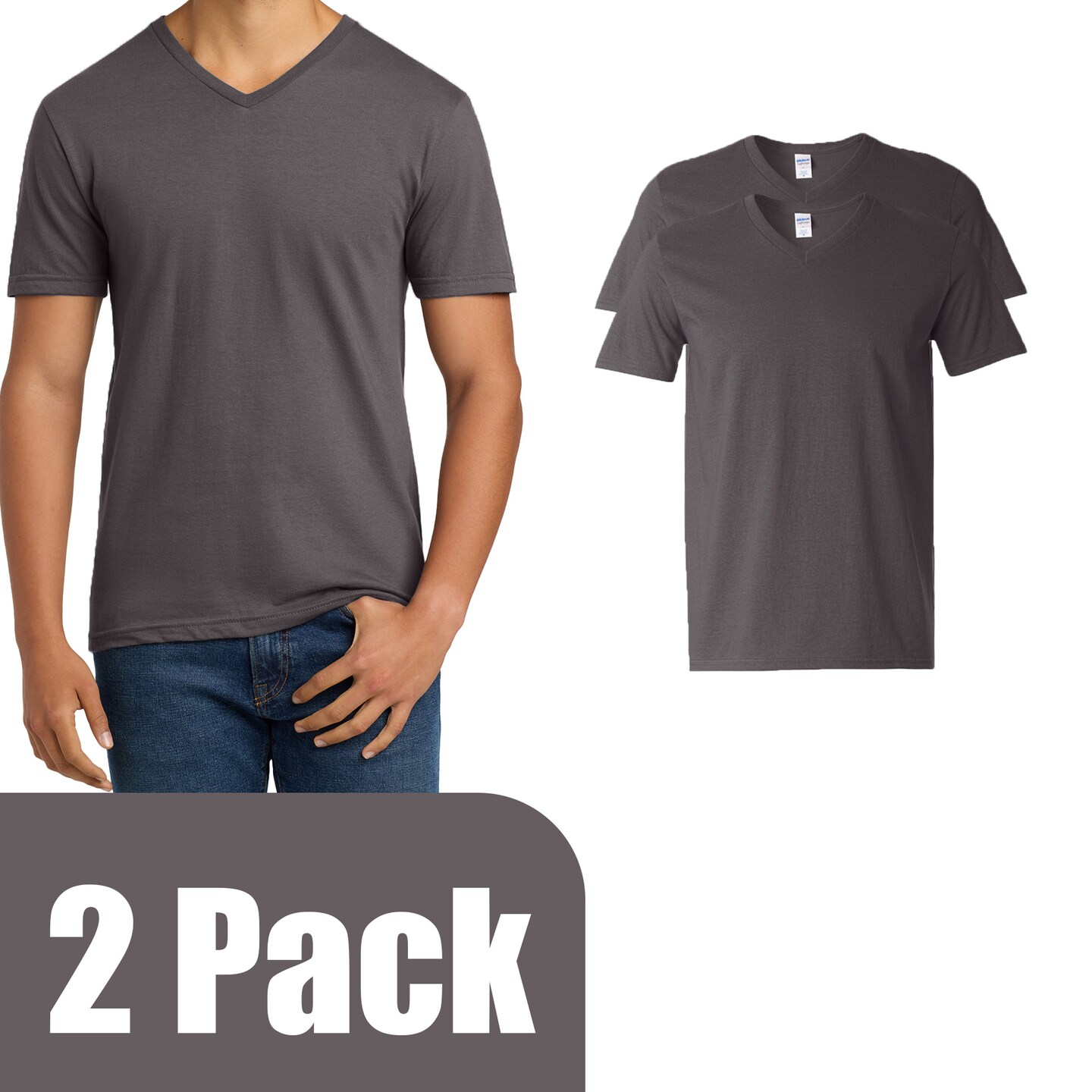 Gildan Men's Softstyle V-Neck T-Shirt, Short Sleeve Craft Bundle for DIY Printing, Charcoal 2-14 Pack