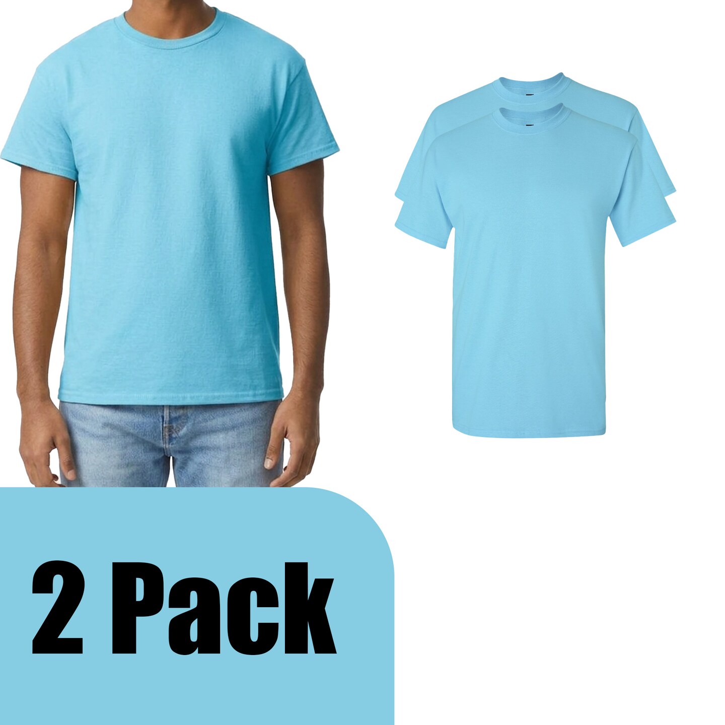 Gildan Men's Ultra Cotton Short Sleeve T-Shirt, Crewneck Craft Bundle for DIY Printing, Sky, S-5XL