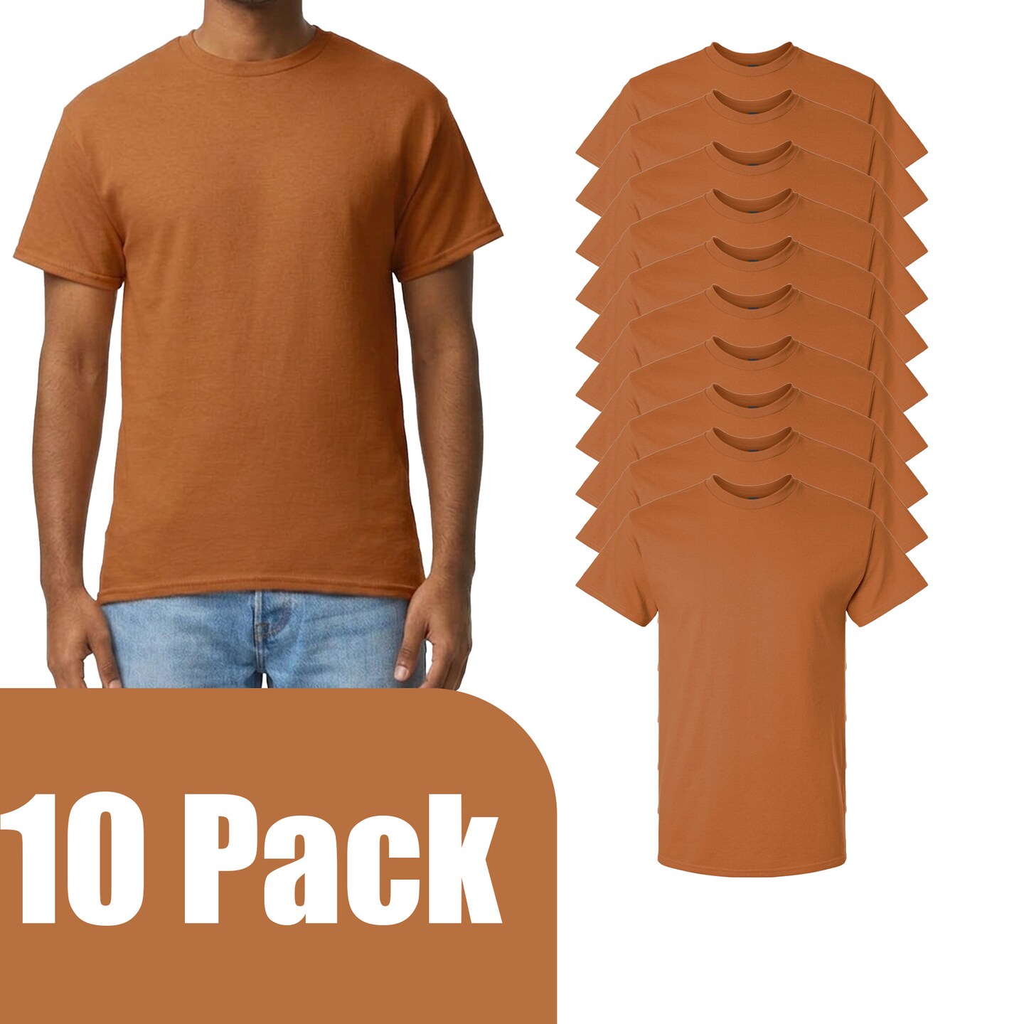Gildan Men's Ultra Cotton Short Sleeve T-Shirt, Texas Orange Blank Tee for DIY Projects (2-14 Pack)