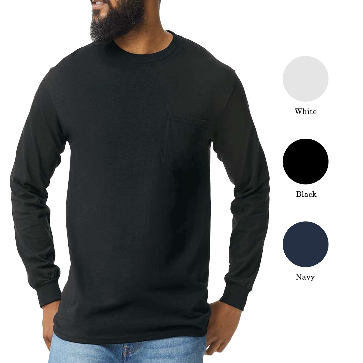 Gildan Ultra Cotton Long Sleeve Pocket T-Shirt, Durable Adult Pullover