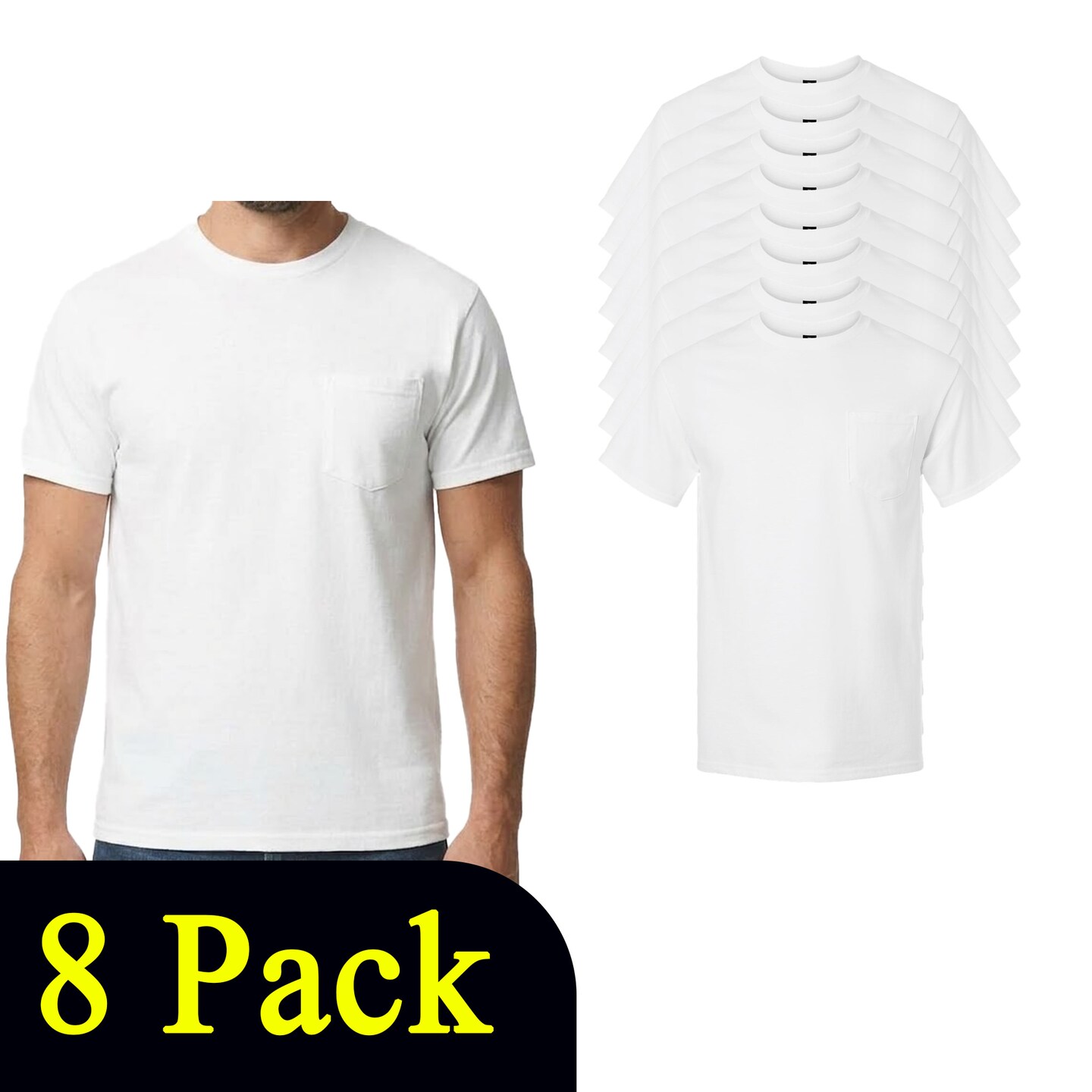 Gildan Ultra Cotton Pocket T-Shirt Craft Bundle, White Unisex Short Sleeve Crewneck Blanks for DIY Printing