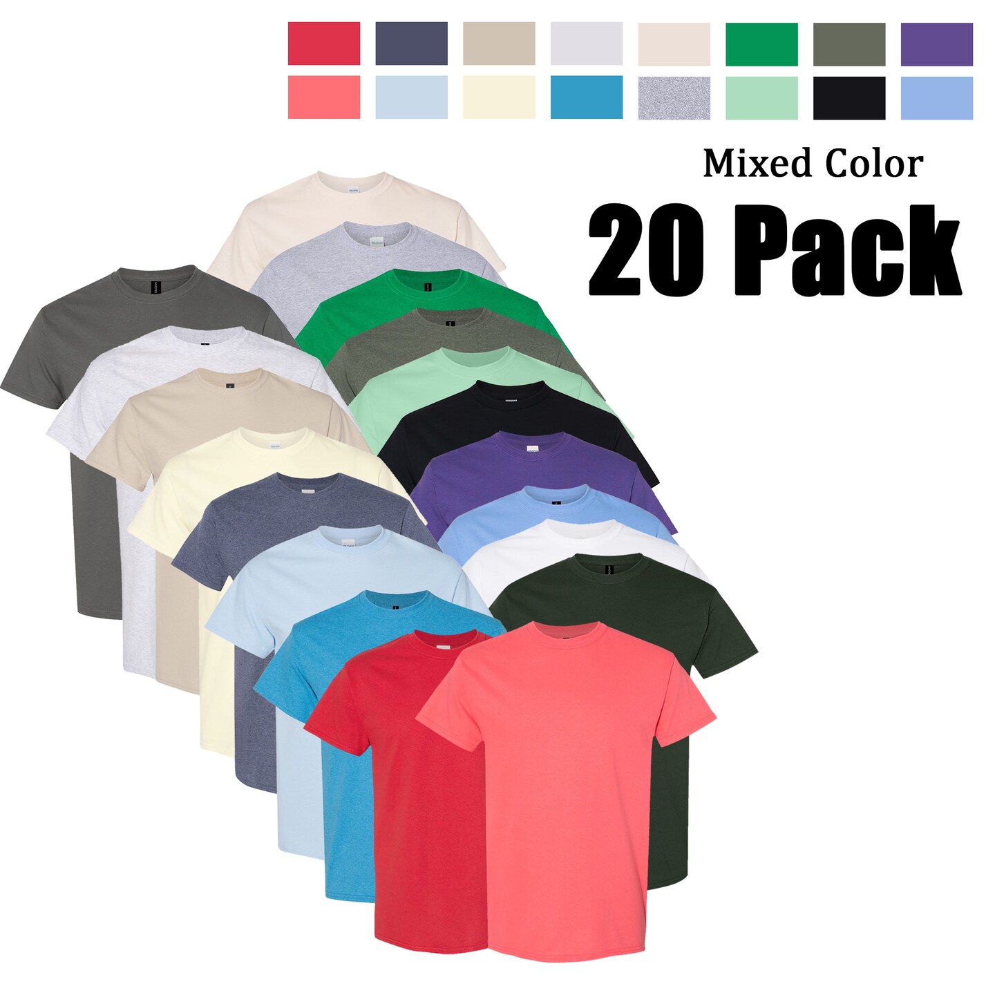 Gildan Unisex Heavy Cotton T-Shirt, Customizable T-Shirt Bundle– Pack 20