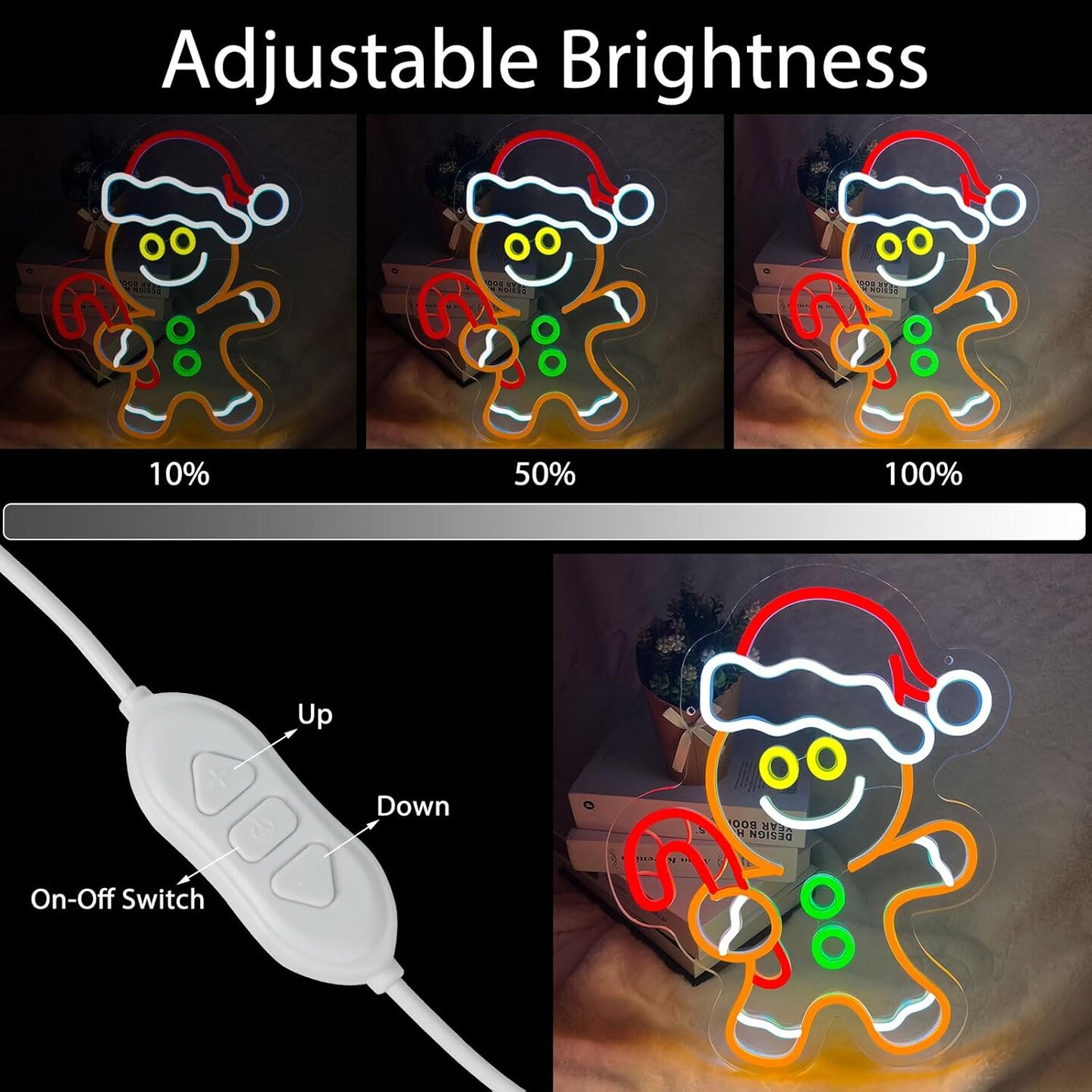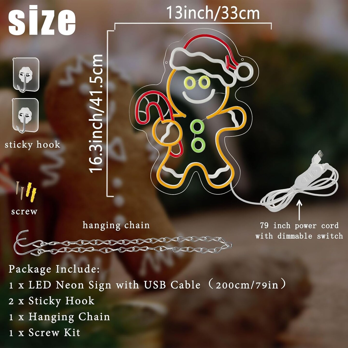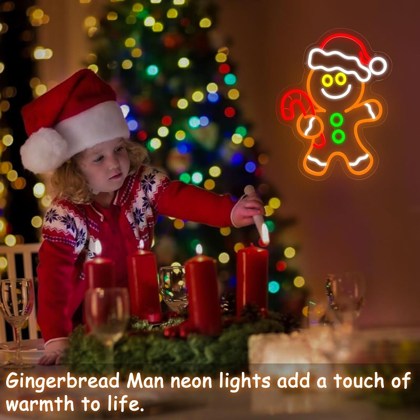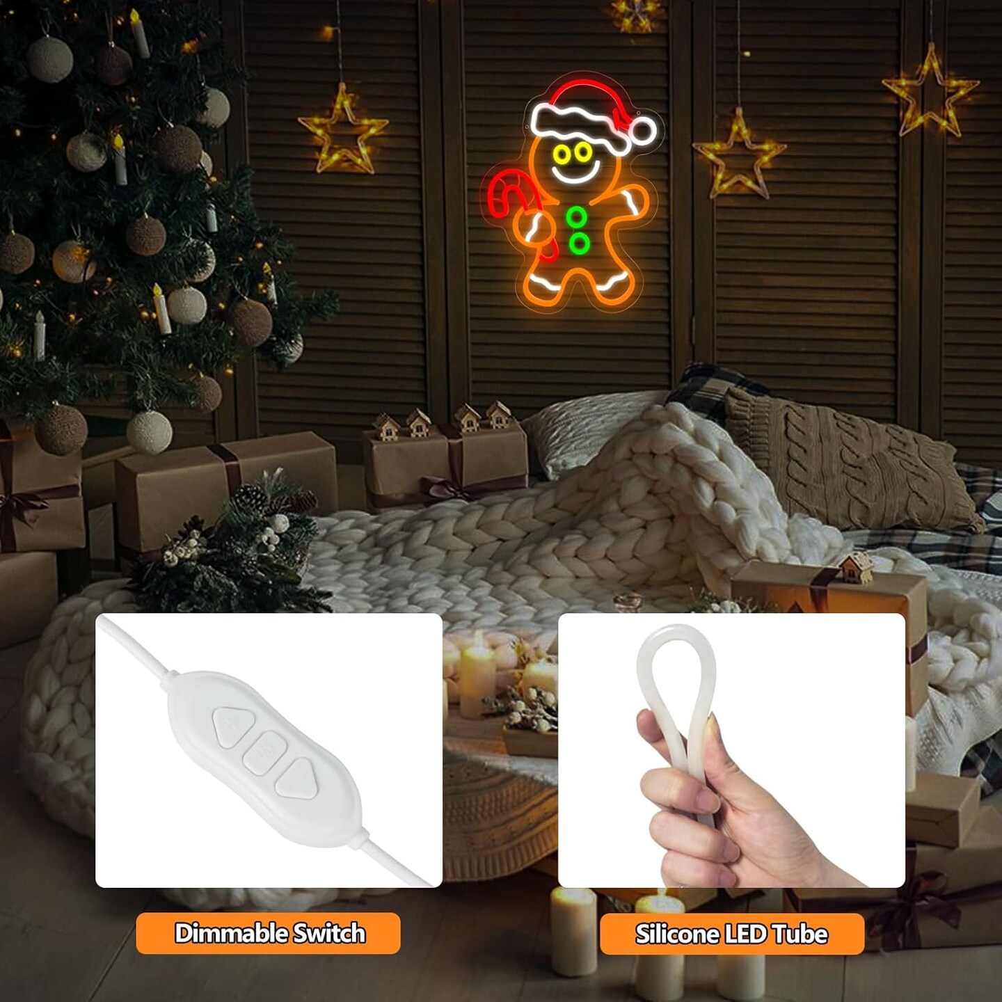 Gingerbread Man Neon Sign for Christmas Decor, Dimmable Christmas Neon Signs for Wall Decor, LED New Year Neon Lights for Kids Room, Living Room, Birthday, Party, Club, Girls, Boys