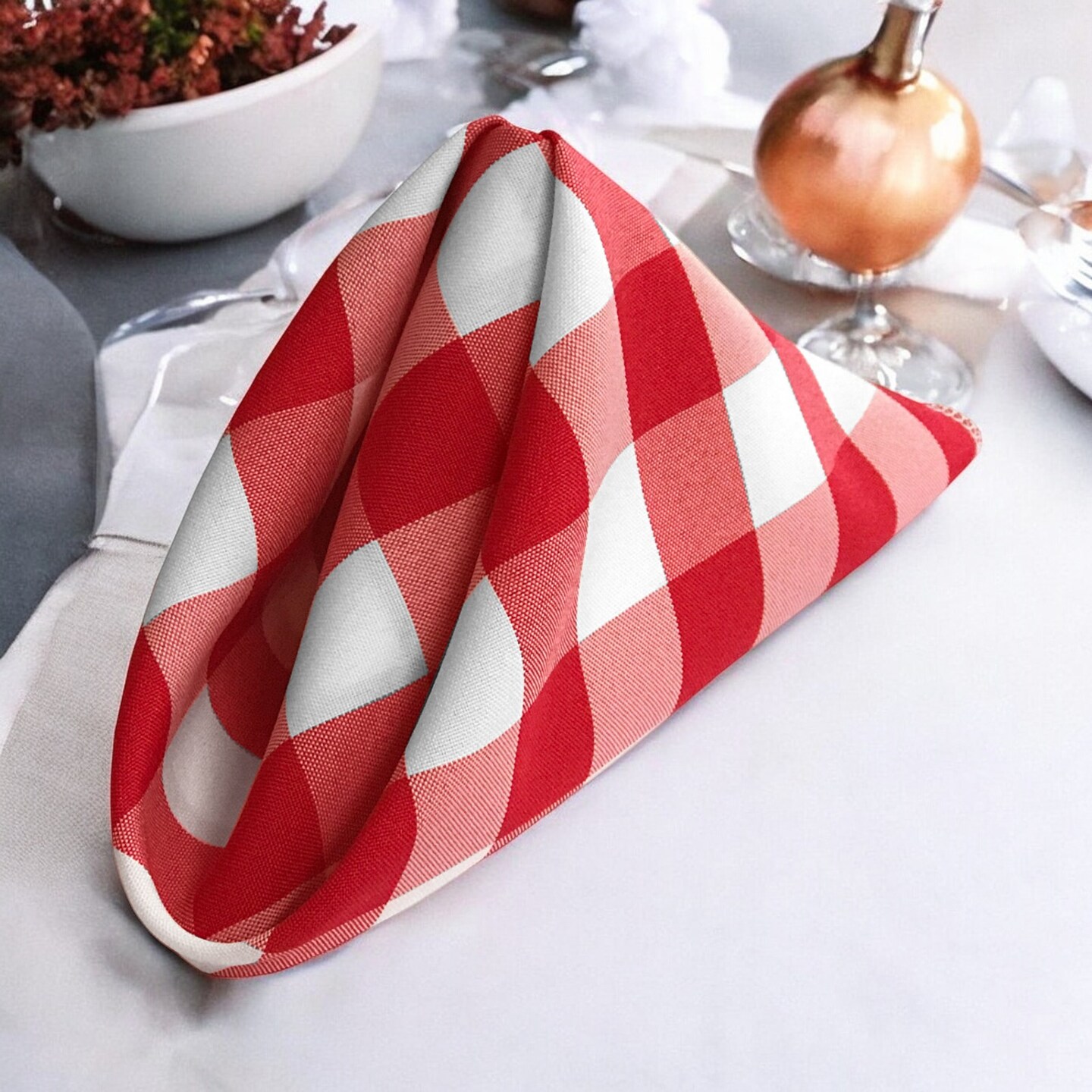 Gingham Checkered Napkins Pack of 4 18 x 18 Inch Polyester Reversible Table Linens