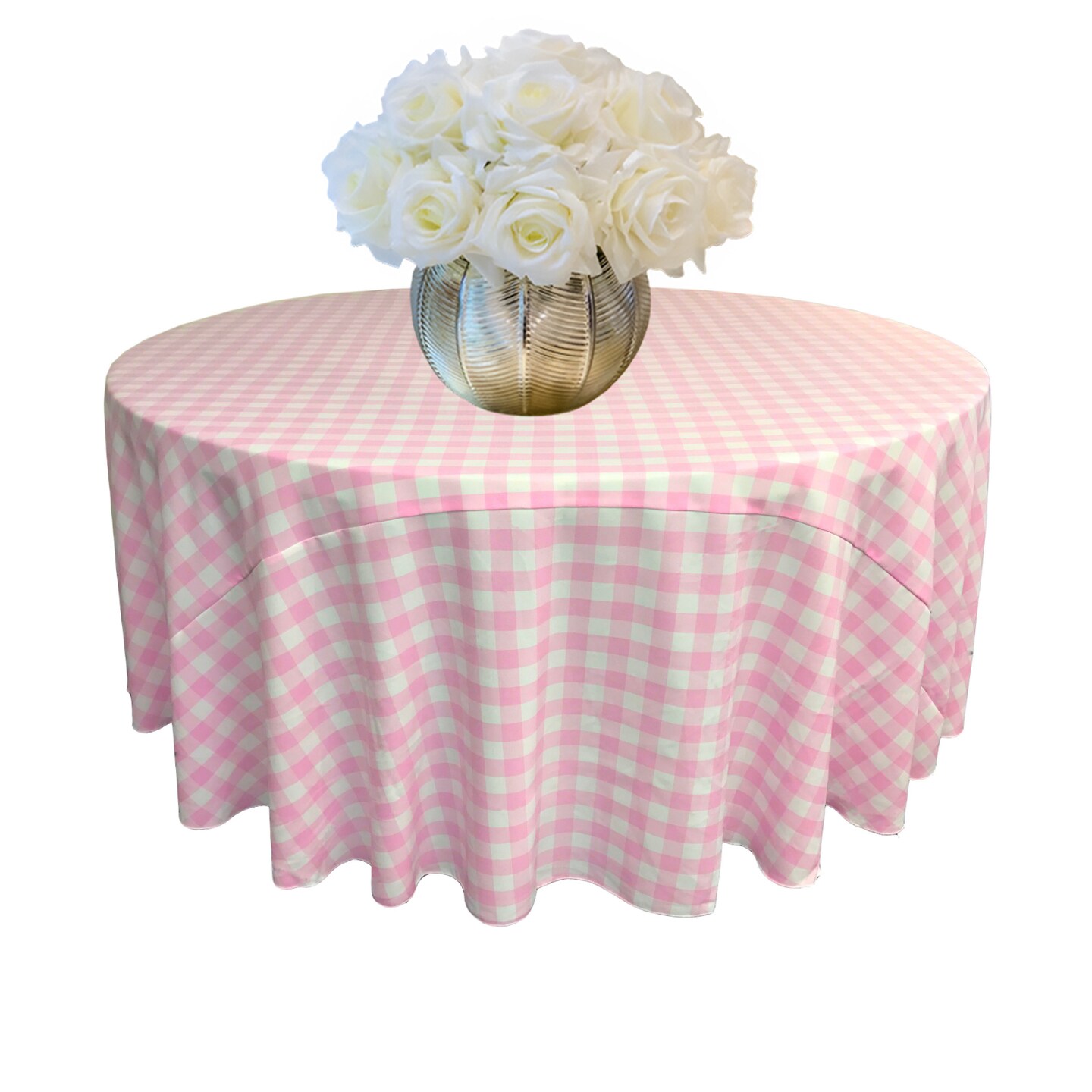 Gingham Checkered Round Tablecloth 108 Inch Spun Polyester Double Sided White and Black