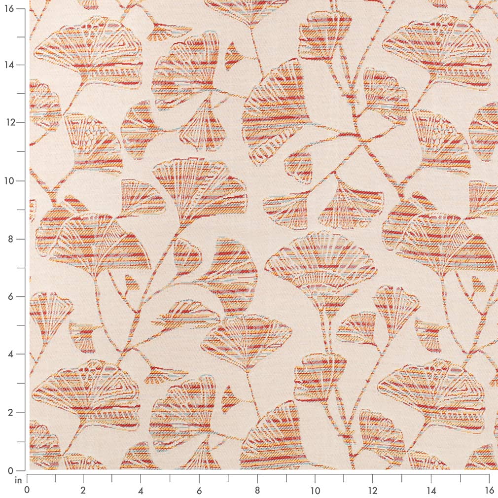 Ginkgo Poppy - Red & Burgundy Leaves Upholstery Fabric 54 Inches"