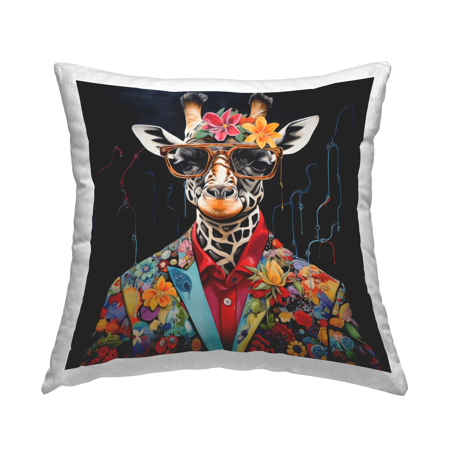 Giraffe in Floral Suit Design by Lazar Studio Throw Pillow