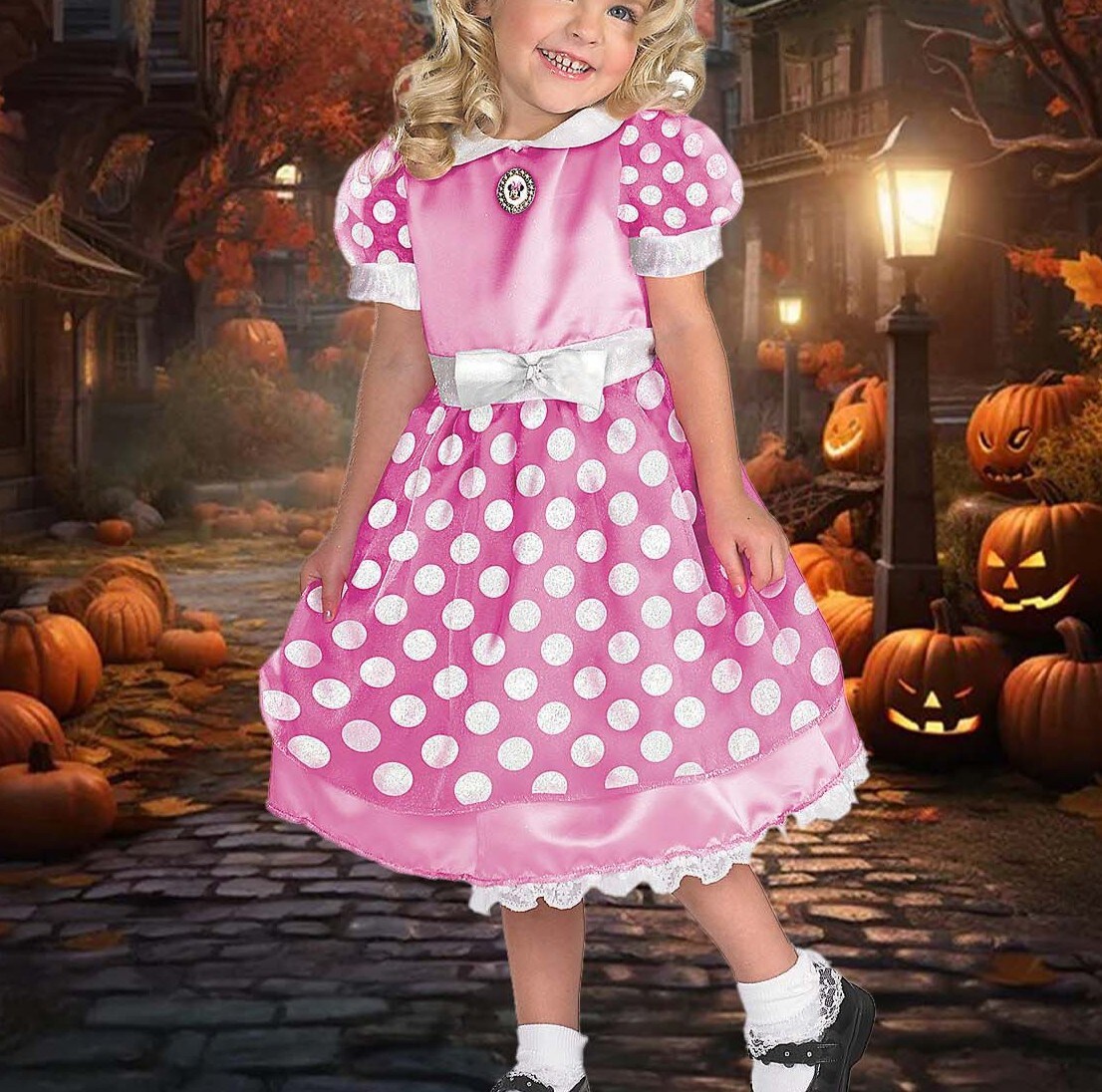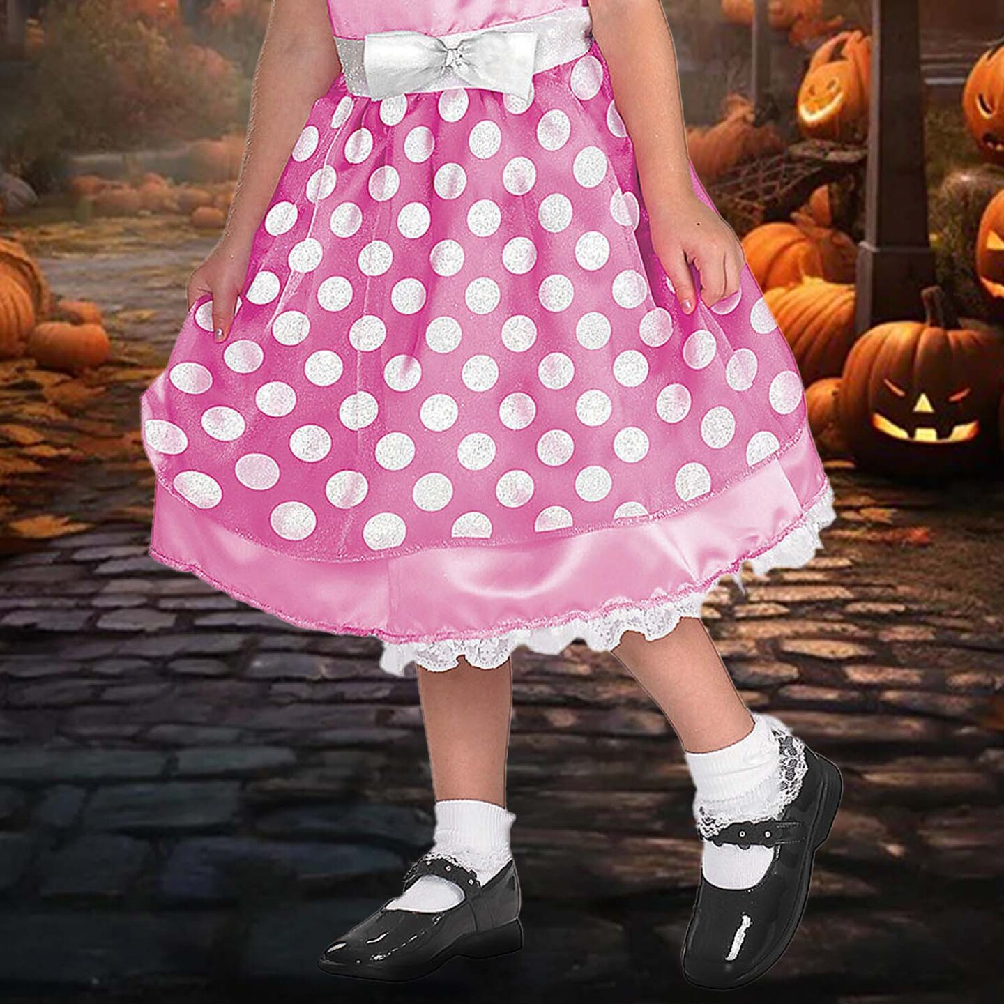 Girl's Minnie Mouse Costume Pink Dress with Polka Dots and Mouse Ears Headband