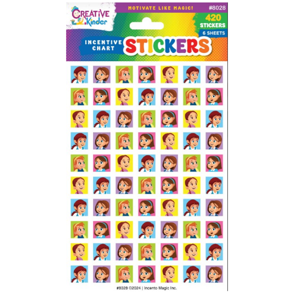 Girl Character Face Square Stickers – 25 Sheets (420 Pack) | Fun Reward Stickers for Kids, Teachers & Crafts